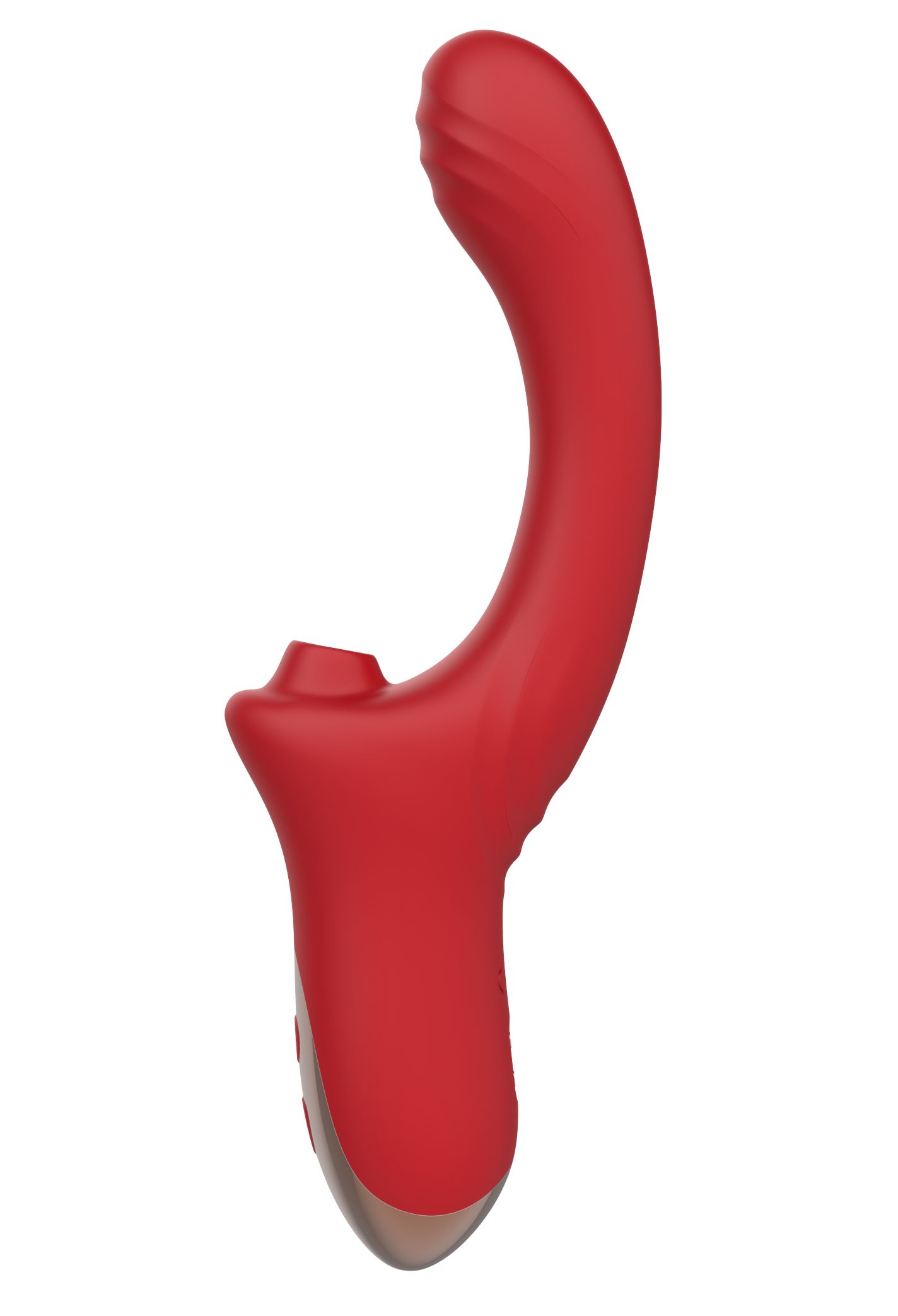 Изогнутая рабочая часть длиной 15,5 см мягко повторяет контуры тела и обеспечивает точное воздействие на чувствительные зоны. Клиторальный отросток с функцией посасывания дополняет классическую вибрацию, создавая эффект комплексной стимуляции. Устройство оснащено 10 режимами вибрации и 10 режимами посасывания — вы легко подберете комбинацию под настроение и уровень чувствительности.