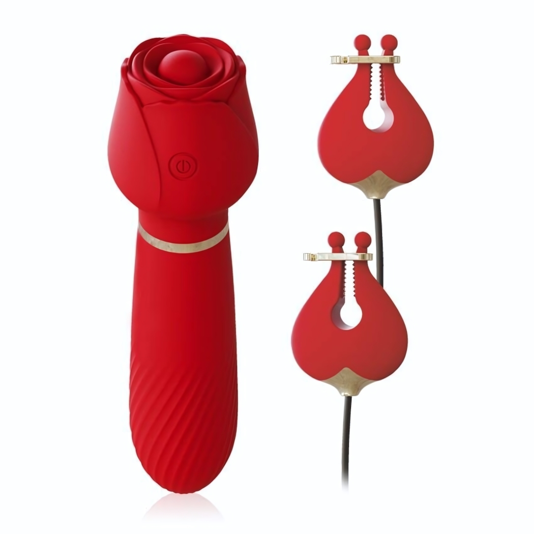 Вибромассажёр-роза с зажимами, 16см, красный, силикон, 10 режимов вибрации