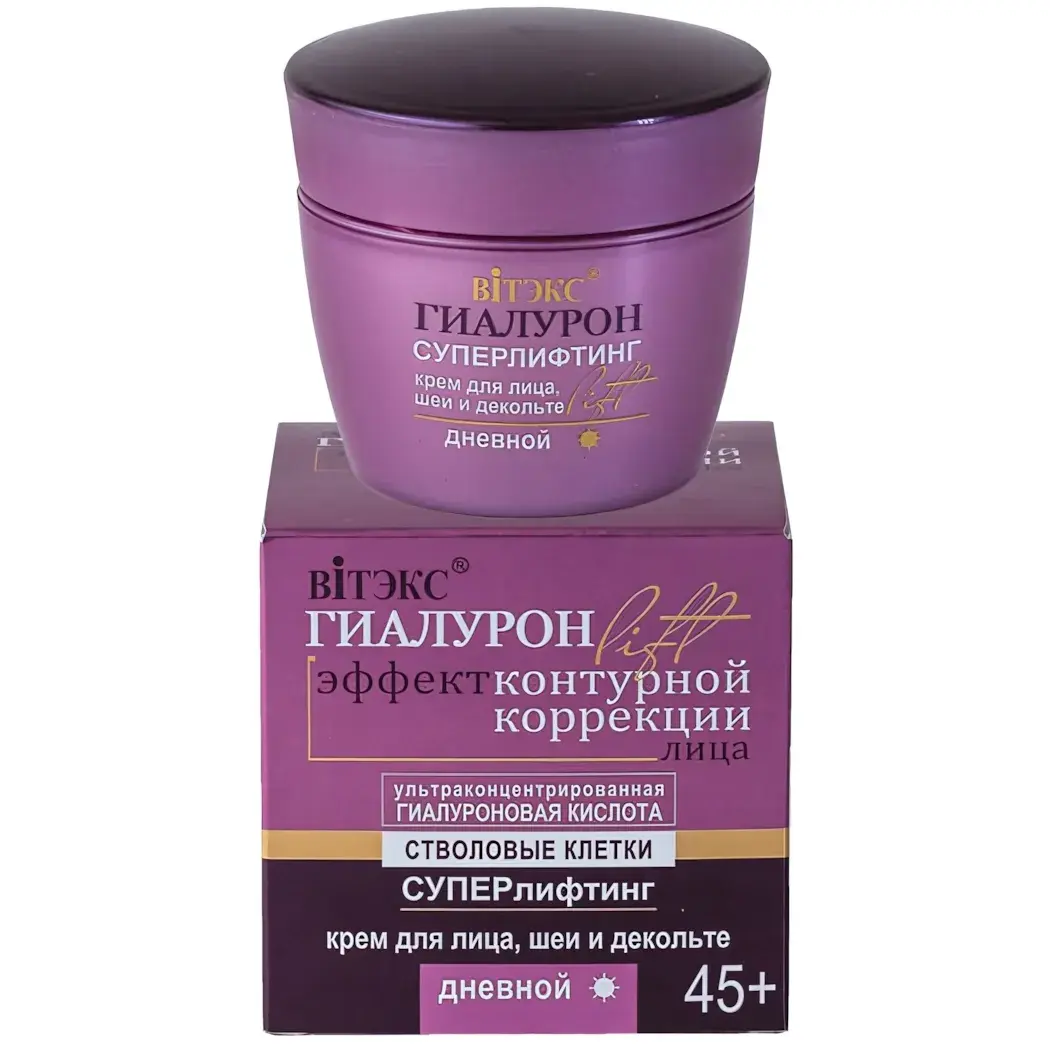 Подарите своей коже заботу и молодость с кремом для лица, шеи и декольте ВИТЭКС Гиалурон. Этот дневной крем, специально разработанный для женщин старше 45 лет, обеспечивает мощный лифтинг-эффект благодаря ультраконцентрированной гиалуроновой кислоте и стволовым клеткам. Он не только увлажняет, но и помогает восстановить контуры лица, придавая коже упругость и свежесть.