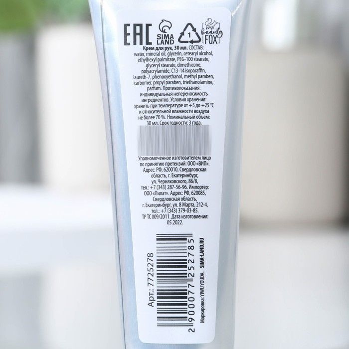Крем упакован в удобный тюбик с округлой формой, что обеспечивает легкость в использовании. Объем составляет 30 мл, что идеально подходит для ежедневного применения. Условия хранения: от -5 °C до +25 °C, влажность не более 70%. Срок годности — 3 года. Не упустите возможность сделать ваши руки мягкими и ухоженными с кремом Beauty Is You!