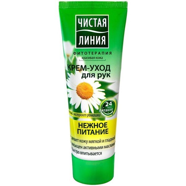 Подарите своим рукам заботу и комфорт с кремом для рук 'Чистая Линия'. Этот крем обеспечивает нежное питание и увлажнение, благодаря чему ваша кожа станет мягкой и гладкой. Экстракт ромашки в составе крема помогает успокоить и восстановить кожу, делая её более здоровой и ухоженной. Идеально подходит для ежедневного использования, крем быстро впитывается, не оставляя жирной пленки, что делает его удобным для применения в любое время.