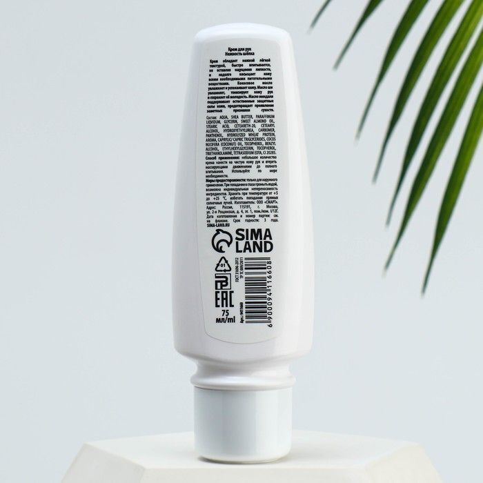Объем упаковки составляет 75 мл, что делает крем удобным для хранения в сумочке или на рабочем столе. Упаковка выполнена из качественного пластика и имеет удобный дозатор, что позволяет экономно расходовать продукт. Не упустите возможность подарить своим рукам заботу и защиту с кремом «Нежность шелка»!