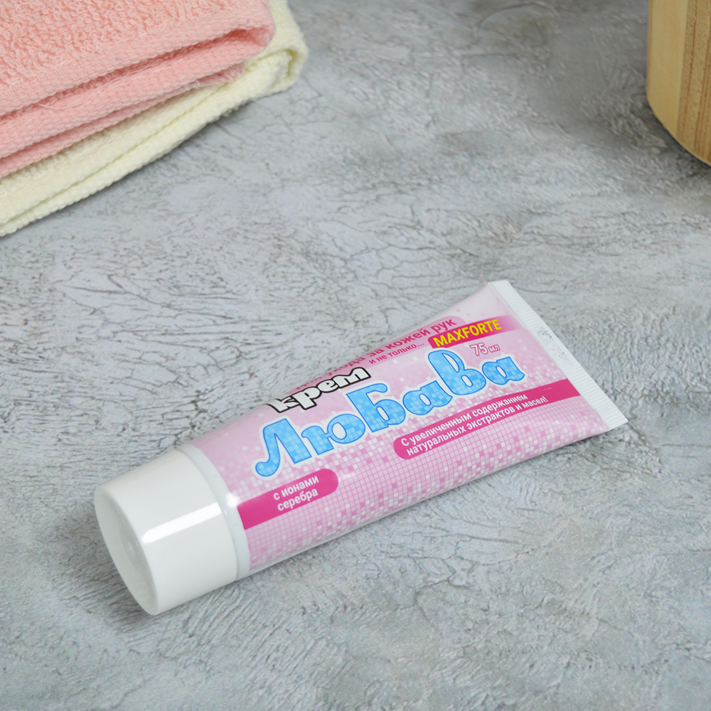 Объем тубы составляет 75 мл, что делает крем удобным для использования как дома, так и в поездках. Светло-розовая упаковка с белым верхом не только привлекает внимание, но и подчеркивает натуральность продукта. Крем "ЛЮБАВА MAXFORTE" — это ваш надежный помощник в уходе за телом, который обеспечит вам комфорт и уверенность в любой ситуации.
