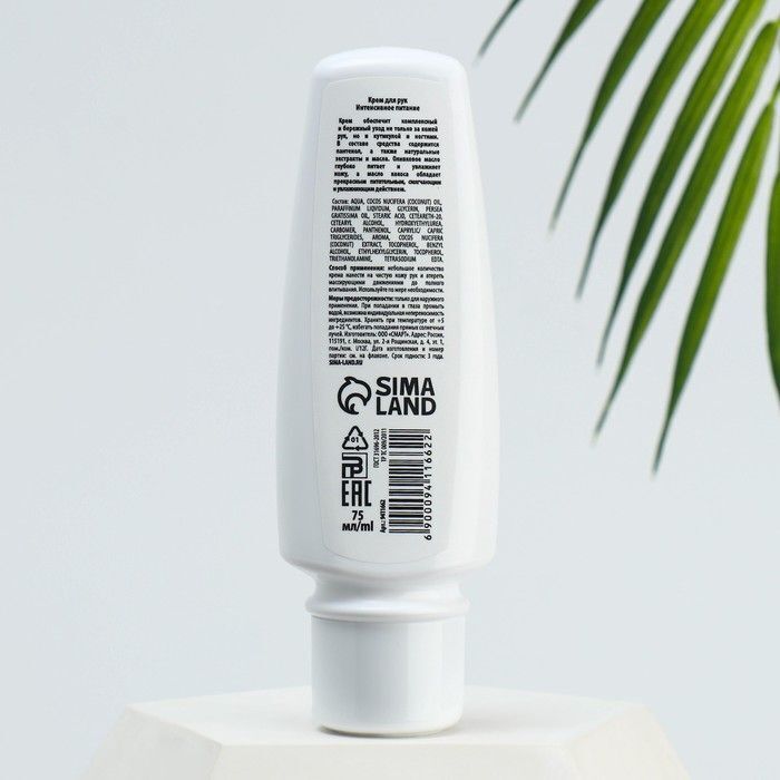 Объем тюбика — 75 мл, упаковка белого цвета с растительными элементами, позволяет контролировать расход и сохранять свежесть средства до последней капли. Легко помещается в сумку или косметичку. Крем подходит для ежедневного использования и быстро становится частью личного ритуала заботы о себе.