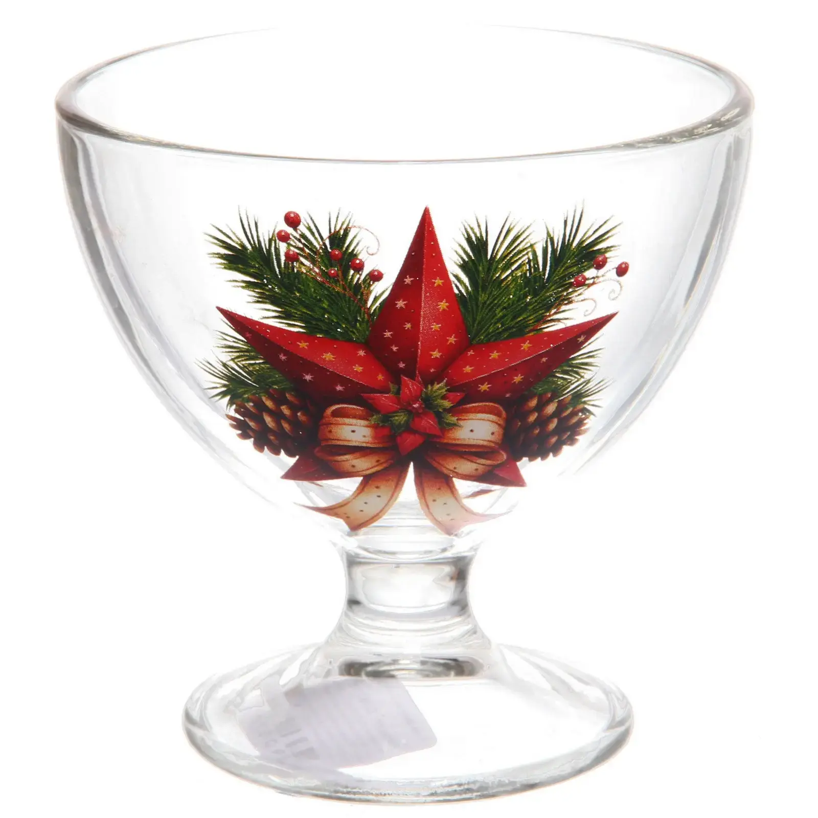 Погрузитесь в атмосферу волшебства с креманкой объемом 310 мл, оформленной в новогоднем стиле. Эта стеклянная чаша станет не только практичным аксессуаром для подачи десертов, но и ярким элементом декора вашего стола. Сочетание прозрачного стекла и праздничного оформления с красными звездами, зелеными ветками и шишками создаст уютную атмосферу на любом празднике.