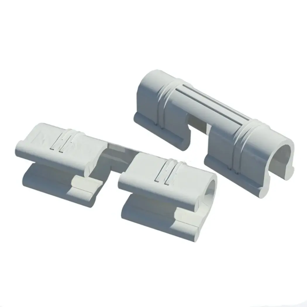 Гладкая поверхность с бороздками предотвращает повреждение материала. Усиленные зажимы равномерно распределяют нагрузку, исключая разрывы. За счет гибкости пластика крепление адаптируется к неровностям каркаса.