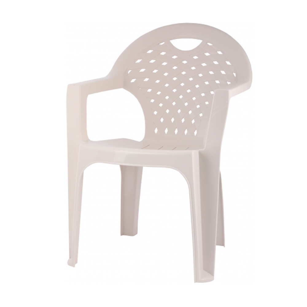 Благодаря перфорации в спинке в виде ромбиков, кресло обеспечивает отличную вентиляцию. Прочный пластик устойчив к воздействию внешних факторов и сохраняет презентабельный вид долгое время. Стул имеет удобные подлокотники и высокую спинку, что гарантирует комфорт при длительном использовании.