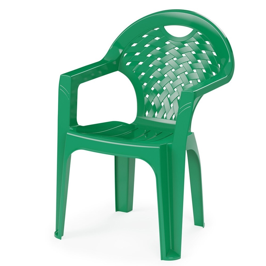 Кресло пластиковое 'Летний сезон', зеленое, с подлокотниками, прочный пластик