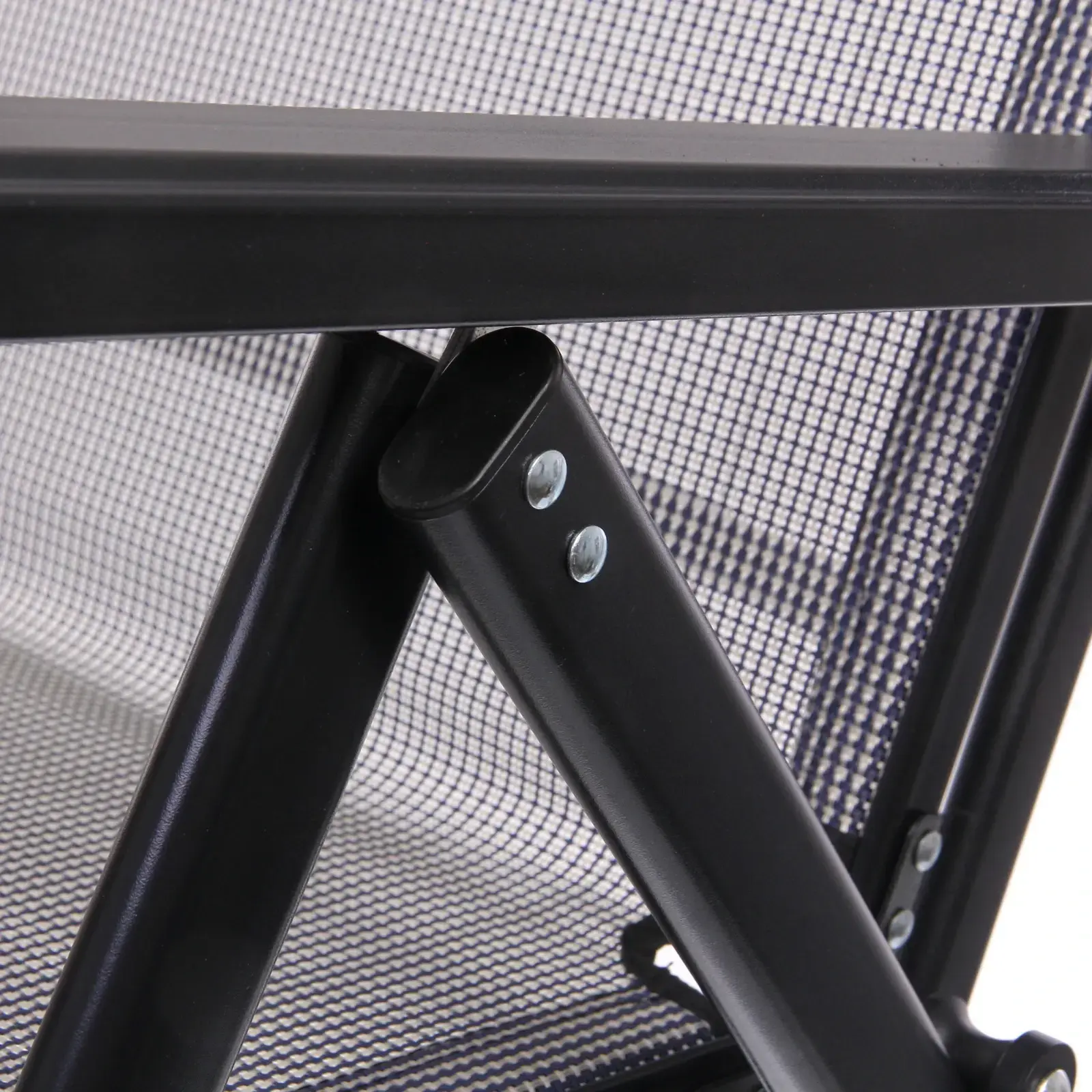 - Складной механизм позволяет легко хранить и транспортировать шезлонг.