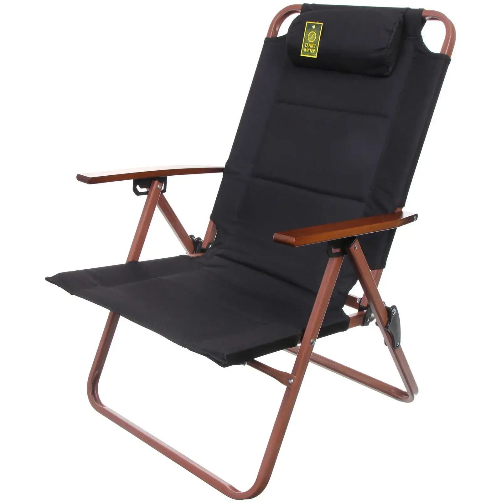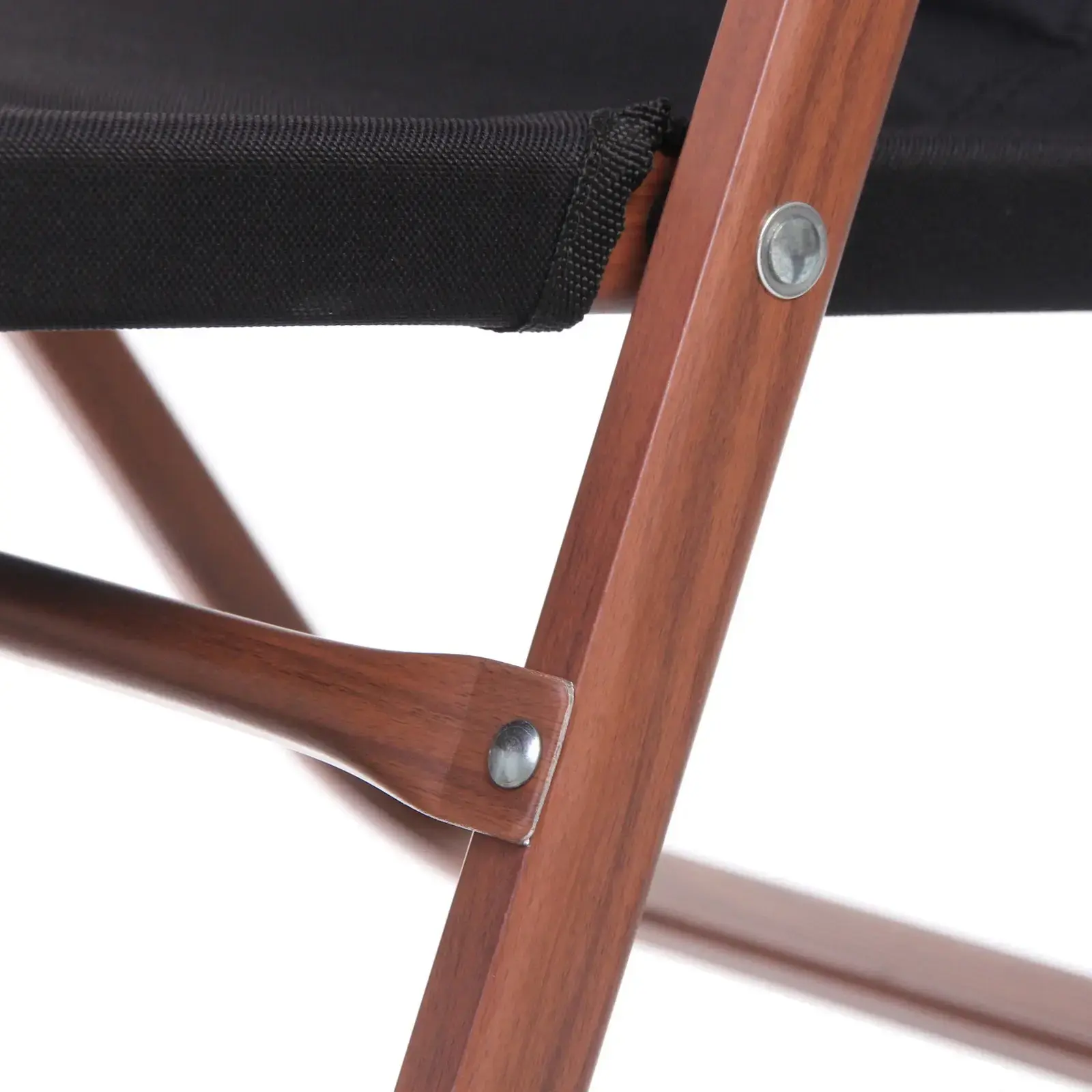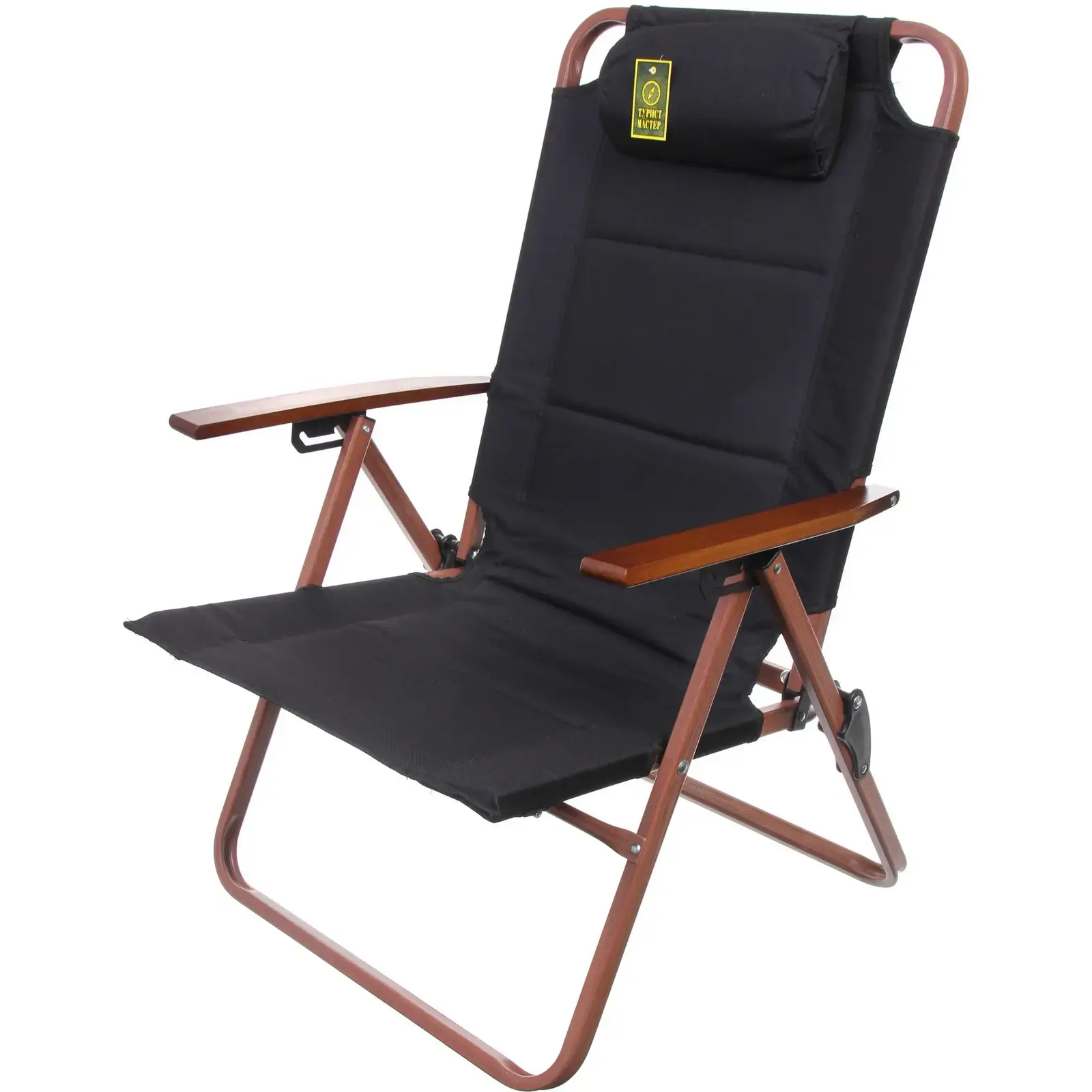 Размеры кресла составляют 59 см в ширину, 52 см в глубину и 88 см в высоту. Цвет — черный, что делает его универсальным и стильным дополнением к любому окружению. Подлокотники выполнены из дерева, что добавляет эстетики и удобства. Это кресло станет вашим надежным спутником в любых приключениях на природе!