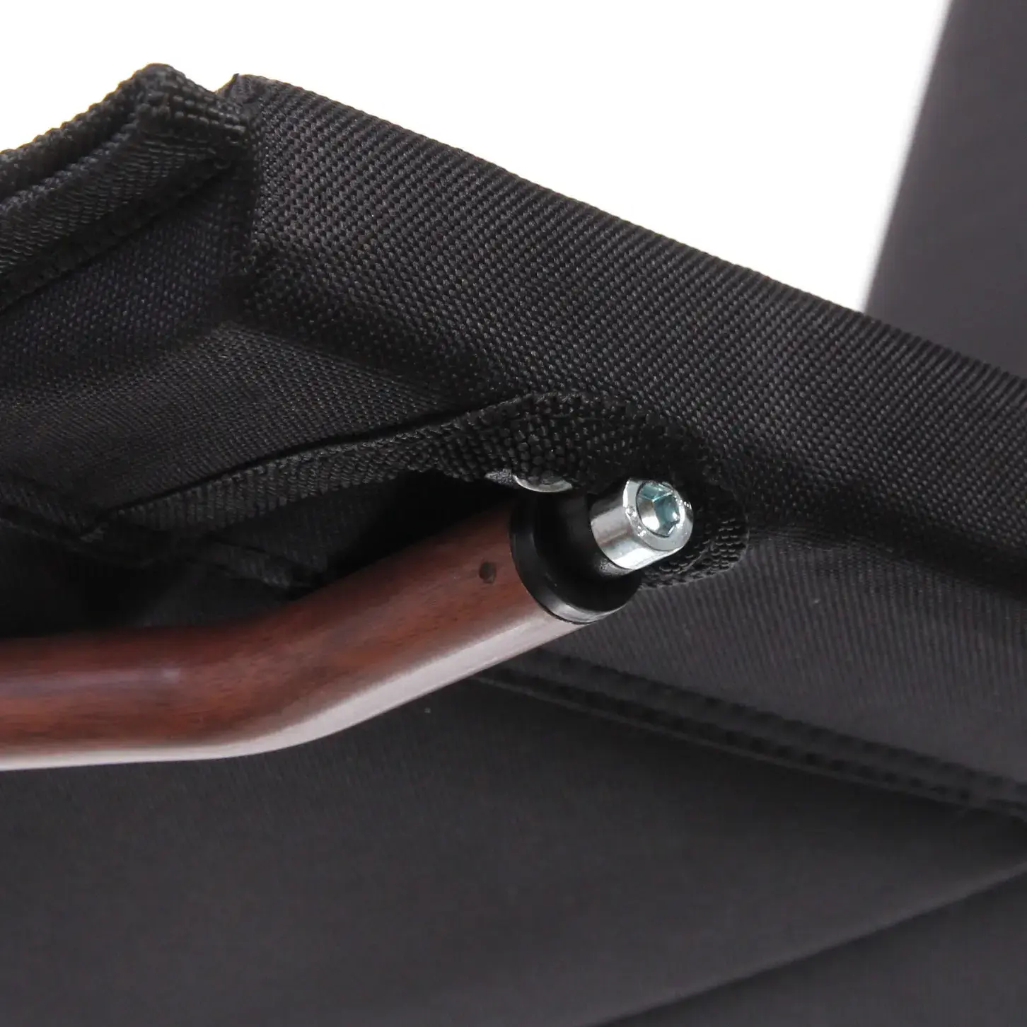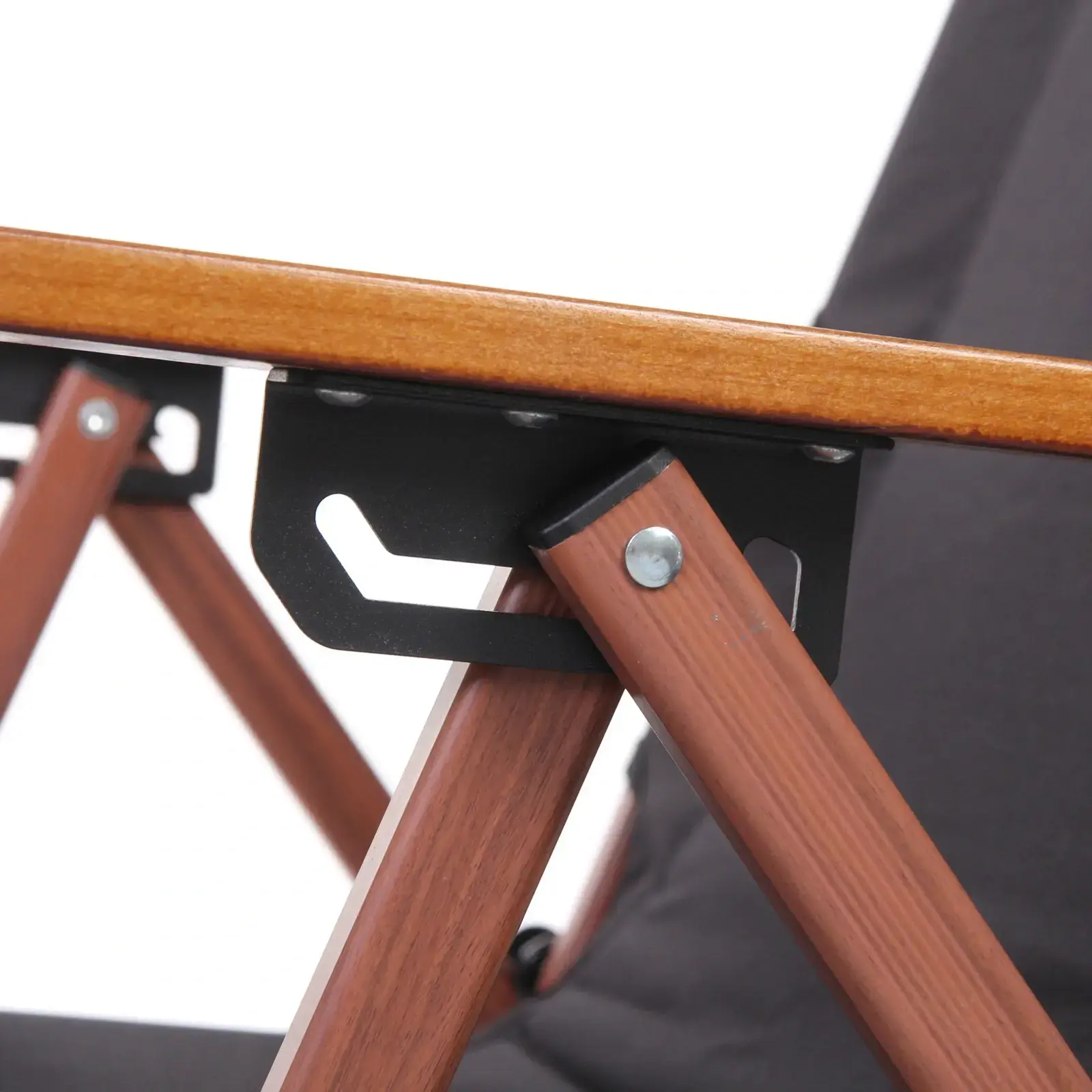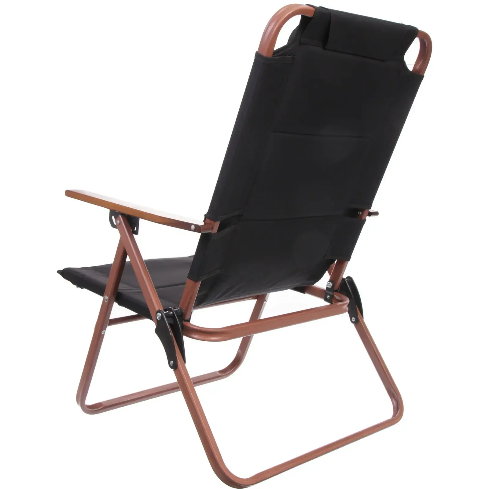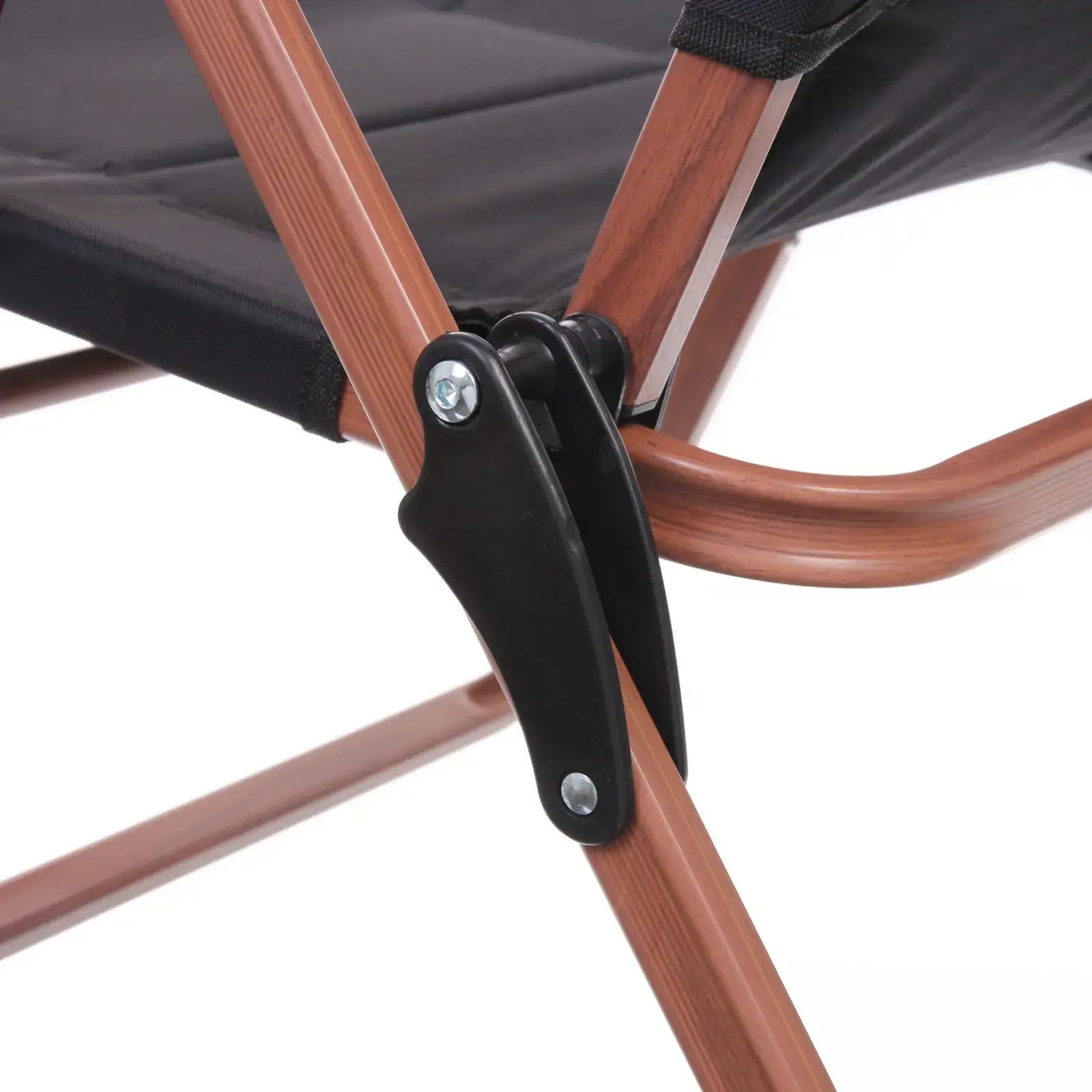 Размеры кресла составляют 59 см в ширину, 52 см в глубину и 88 см в высоту. Цвет — черный, что делает его универсальным и стильным дополнением к любому окружению. Подлокотники выполнены из дерева, что добавляет эстетики и удобства. Это кресло станет вашим надежным спутником в любых приключениях на природе!