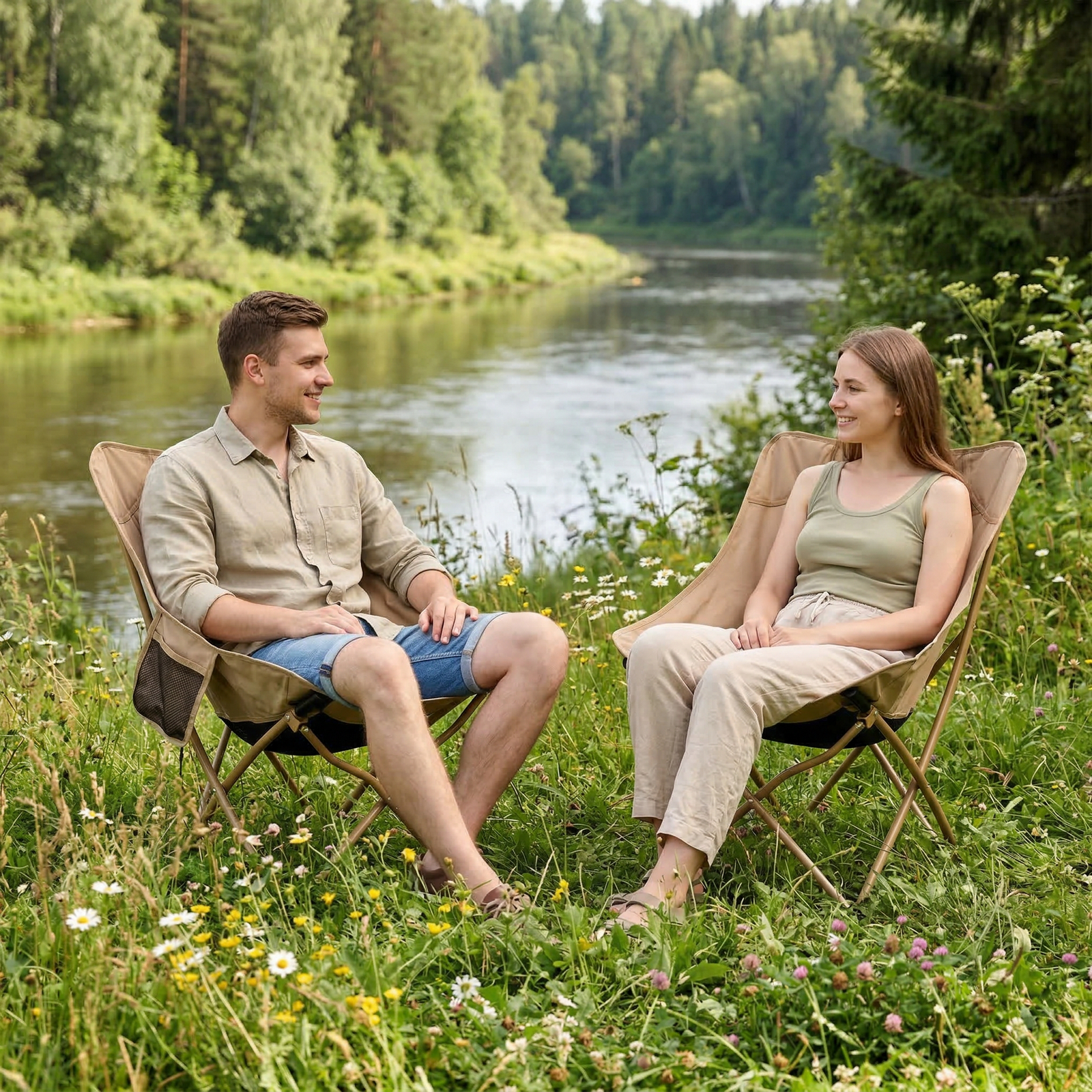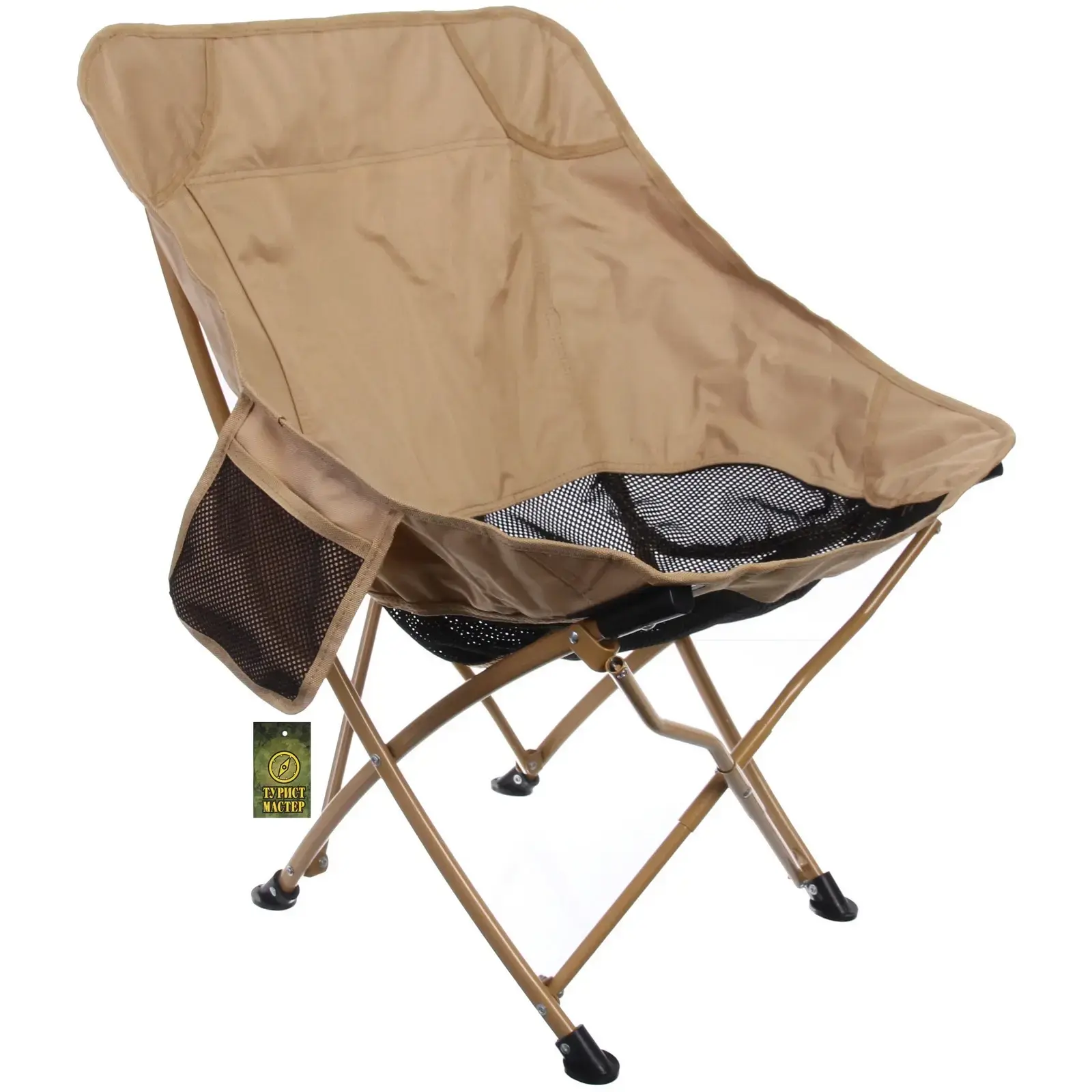 Размеры кресла составляют 55*50*72 см, что обеспечивает достаточно пространства для комфортного сидения. Бежевый цвет ткани легко вписывается в любой интерьер или природный ландшафт. Это кресло станет вашим незаменимым спутником в путешествиях и на отдыхе.