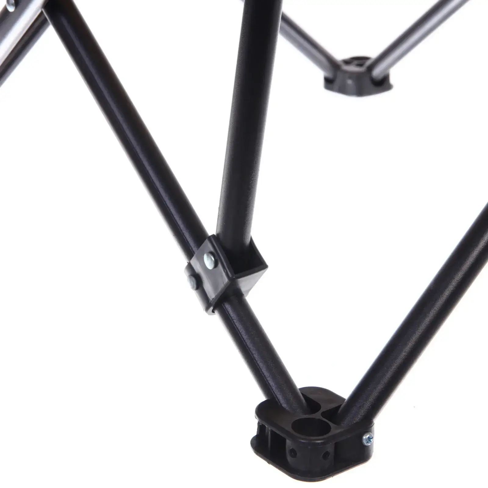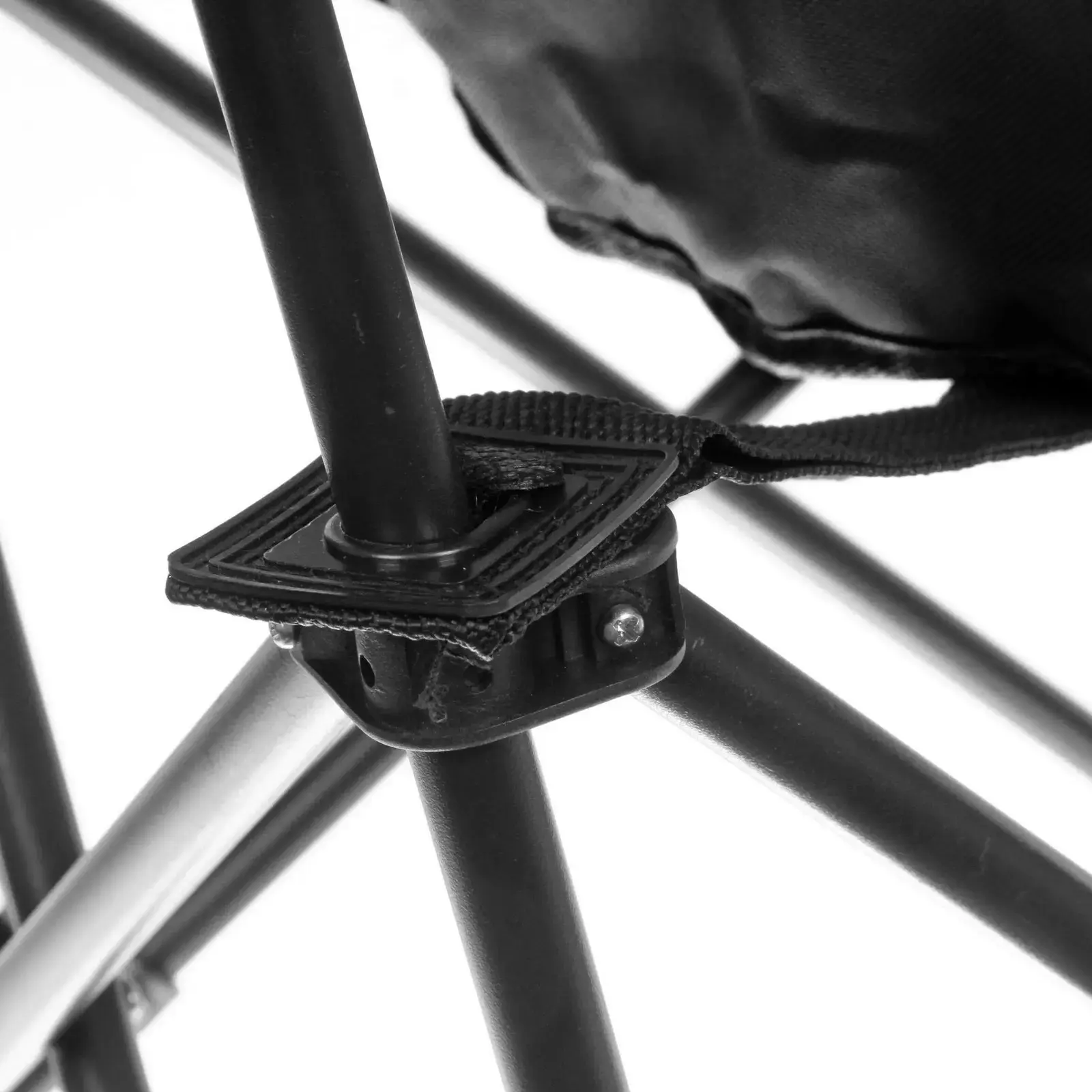 Размер в разложенном состоянии: 50 см (ширина сиденья) × 62 см (глубина) × 94 см (высота спинки). Лёгкий алюминиевый каркас (2.1 кг) складывается за 3 секунды — удобно хранить и перевозить в чехле. Плотная ткань Oxford 600D устойчива к истиранию и влаге.