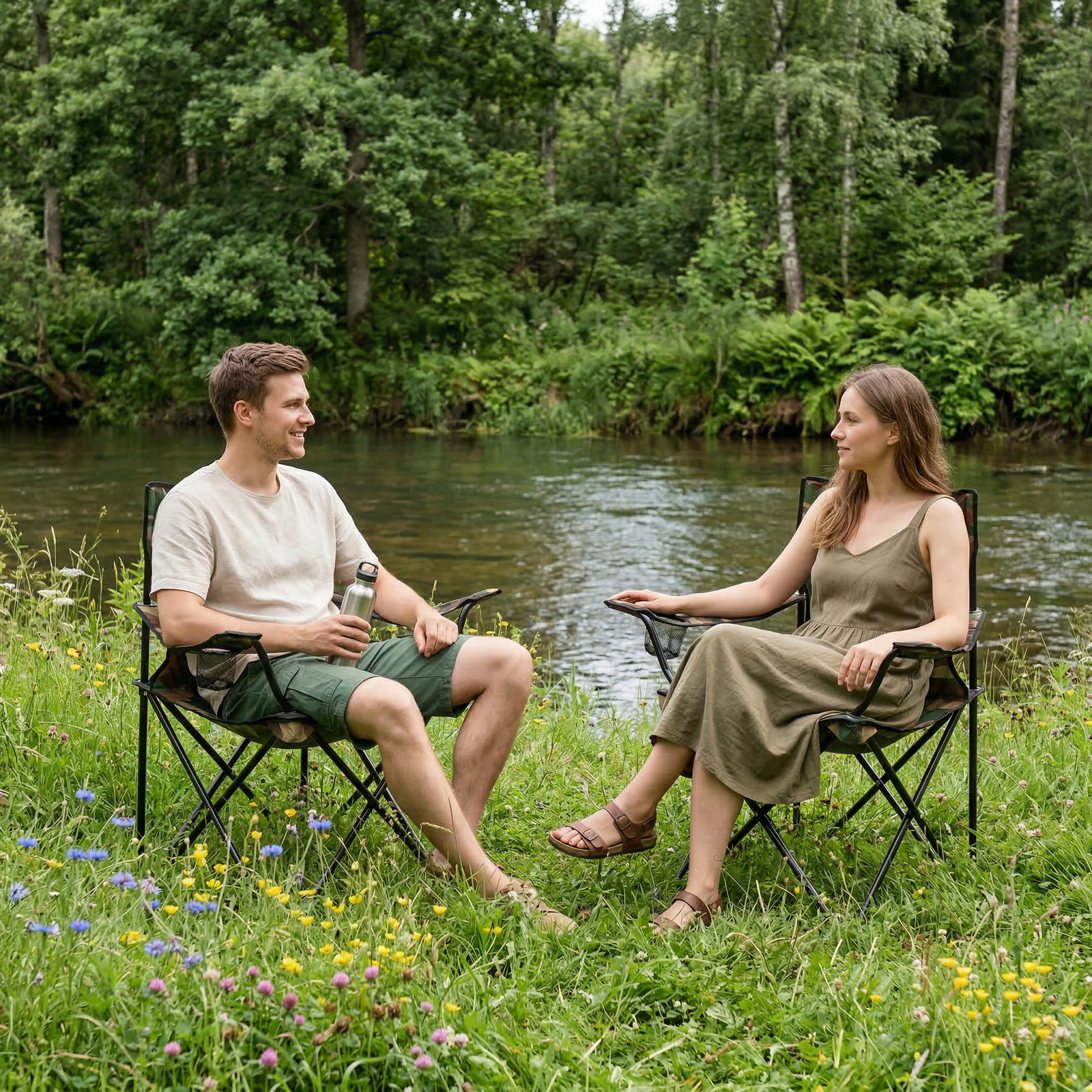 Кресло выдерживает нагрузку до 100 кг, что делает его надежным выбором для большинства пользователей. Каркас из прочной стальной трубы обеспечивает устойчивость и долговечность. Мягкое сиденье с широкими подлокотниками, усиленное вспененным материалом, гарантирует комфорт даже при длительном использовании. Чехол для хранения и переноски в комплекте делает транспортировку кресла простой и удобной.