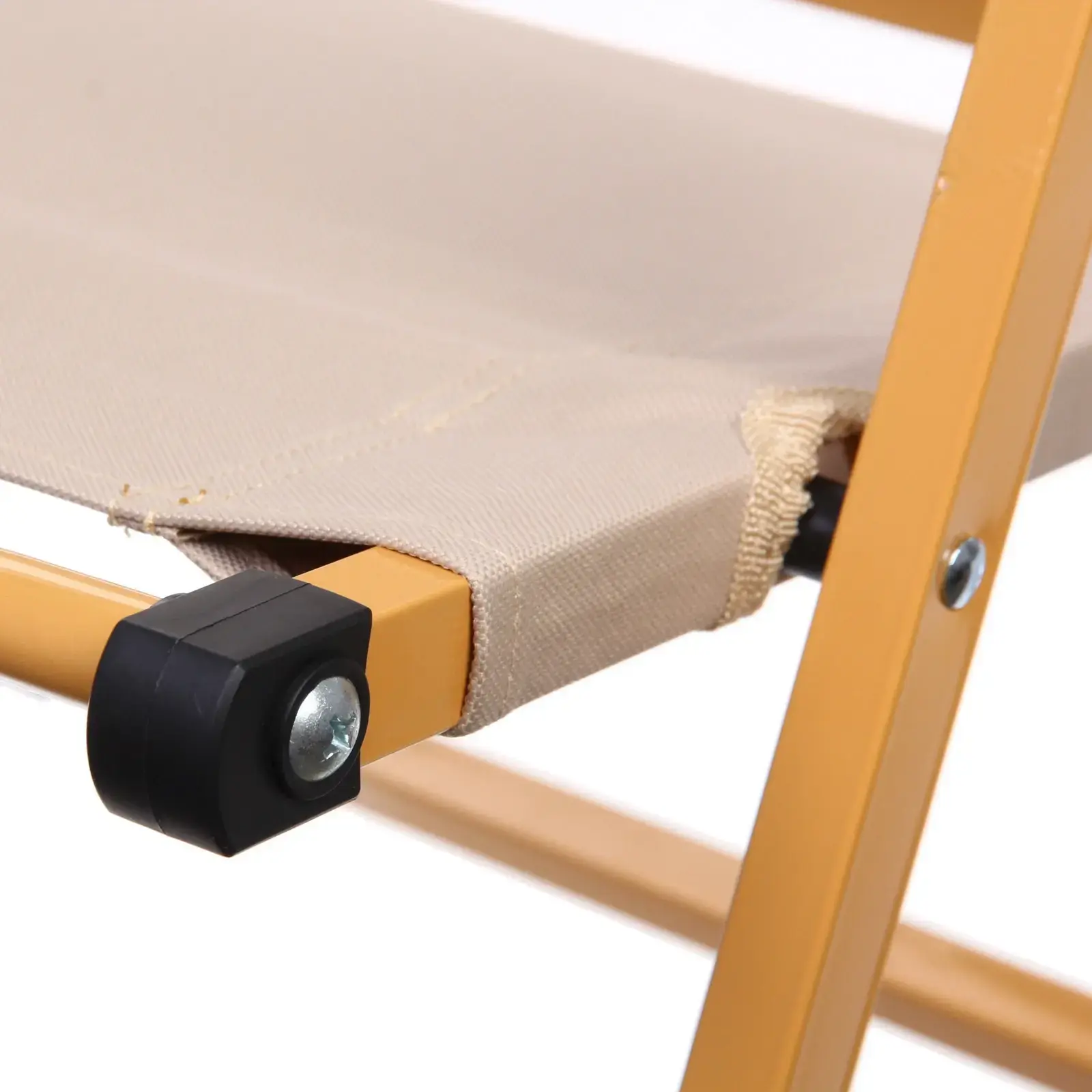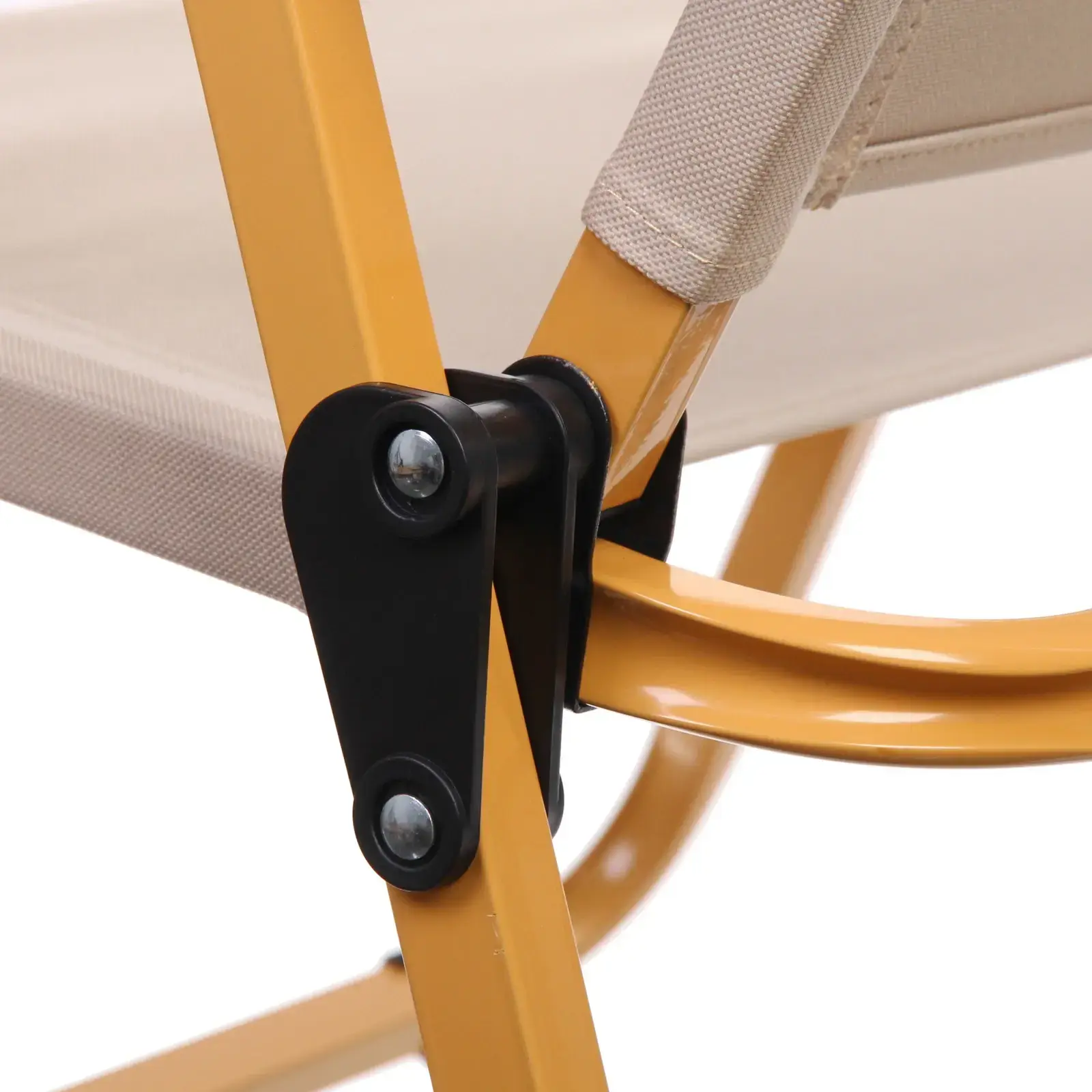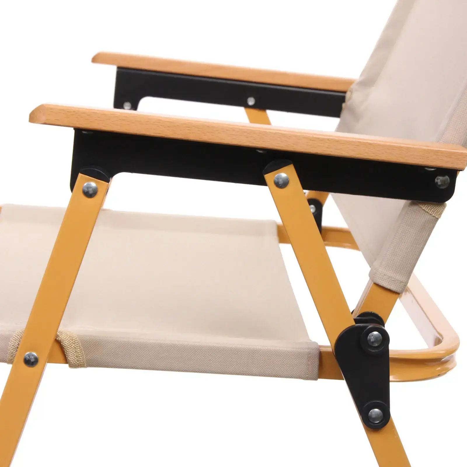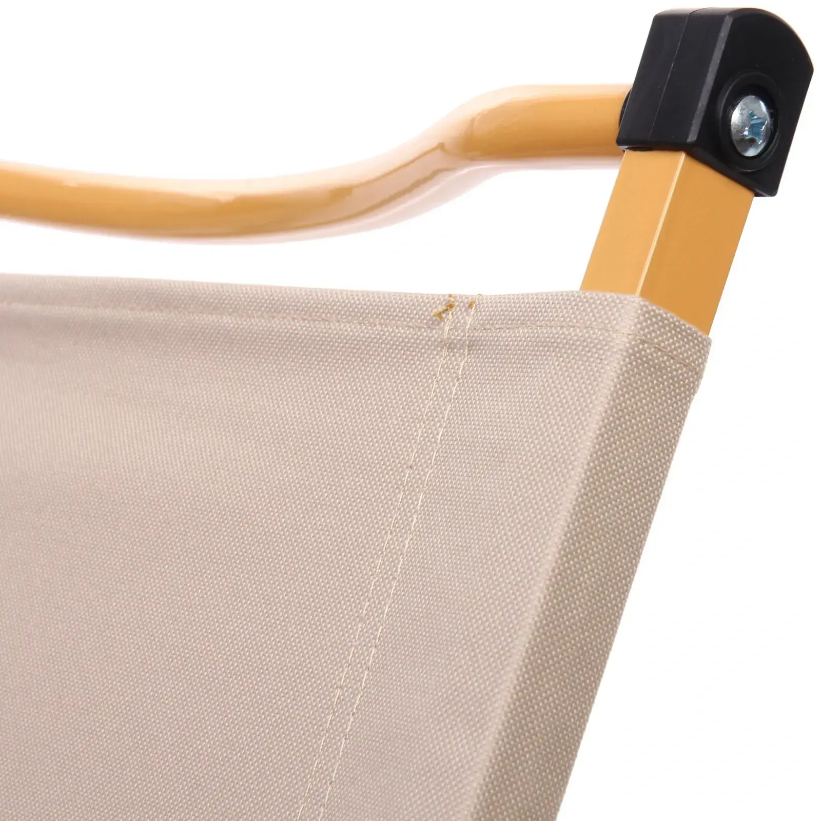 Складное кресло с подлокотниками — идеальный выбор для активного отдыха на свежем воздухе. Оно сочетает в себе прочный металлический каркас и мягкую обивку из бежевой ткани, что обеспечивает максимальный комфорт во время использования. Это кресло станет вашим надежным спутником на пикниках, рыбалке или кемпингах.