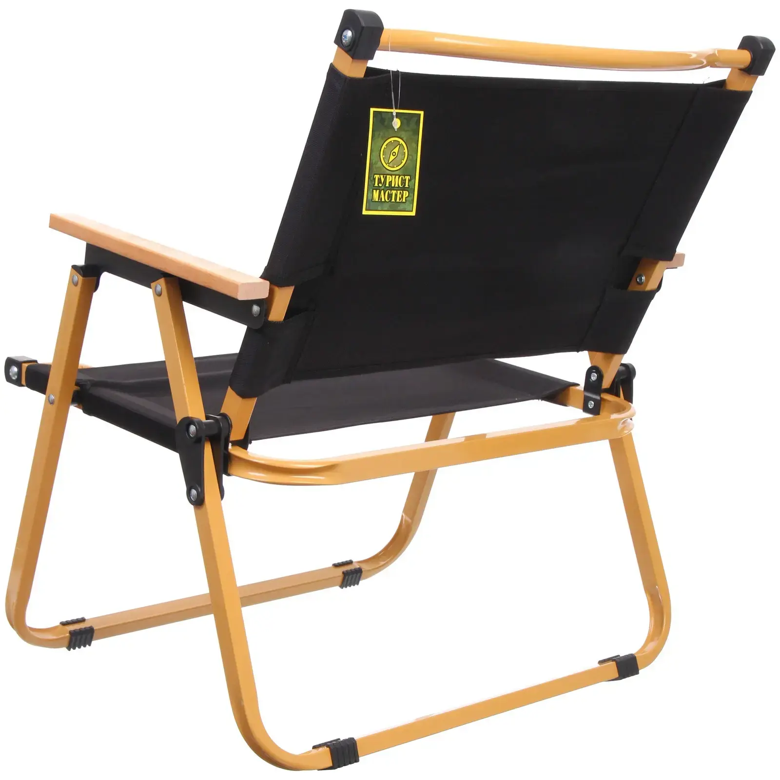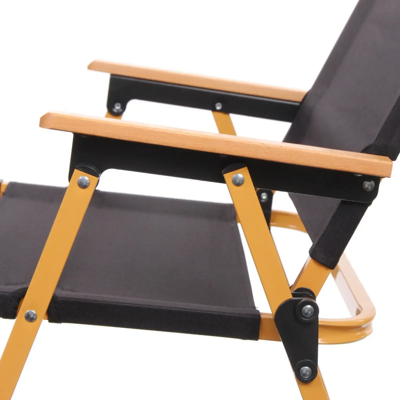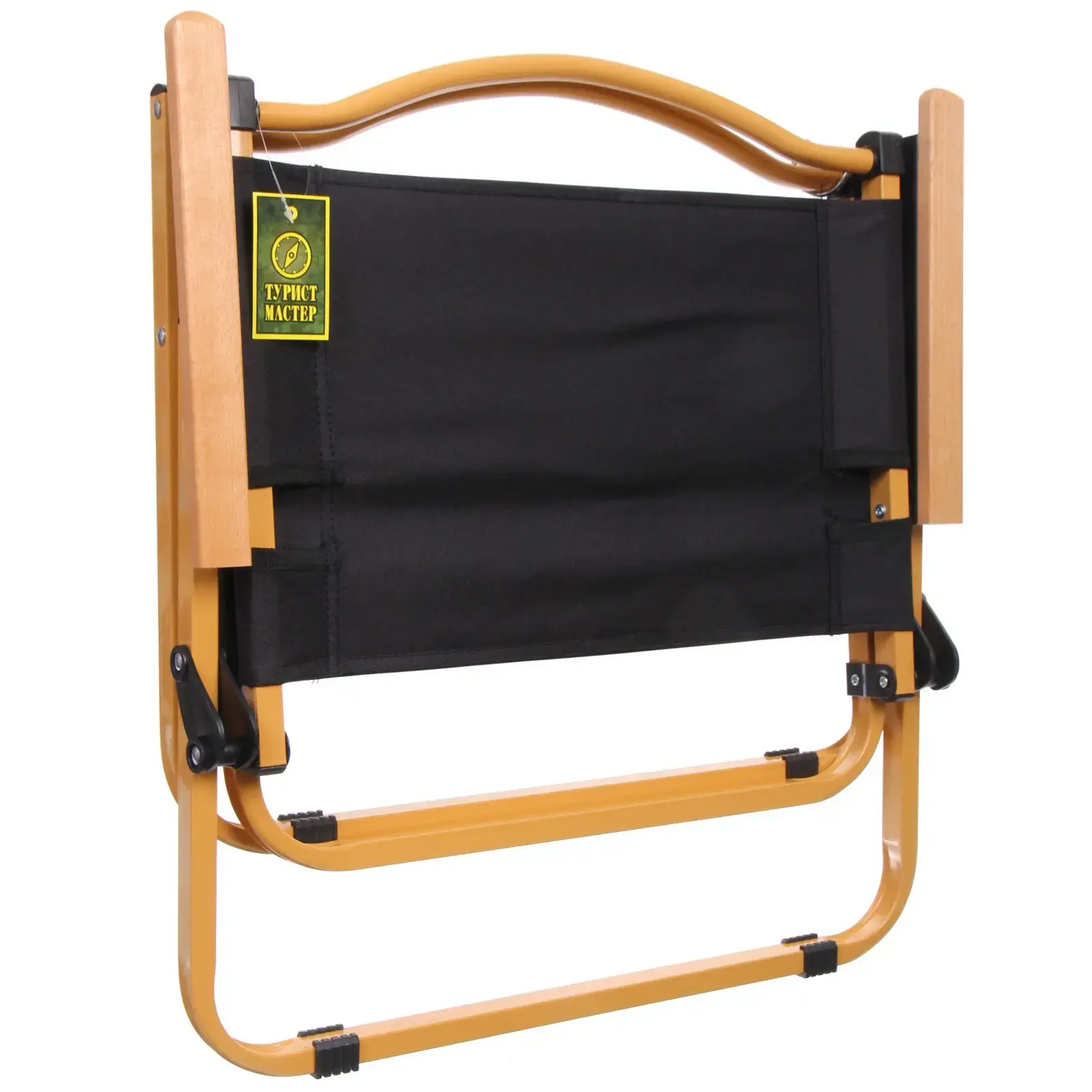 Кресло выполнено из прочного металлического каркаса и двухслойной ткани Оксфорд 600D, что обеспечивает долговечность и устойчивость к внешним воздействиям. Черное текстильное покрытие не только стильно выглядит, но и легко чистится. Деревянные подлокотники добавляют дополнительный комфорт и стиль.