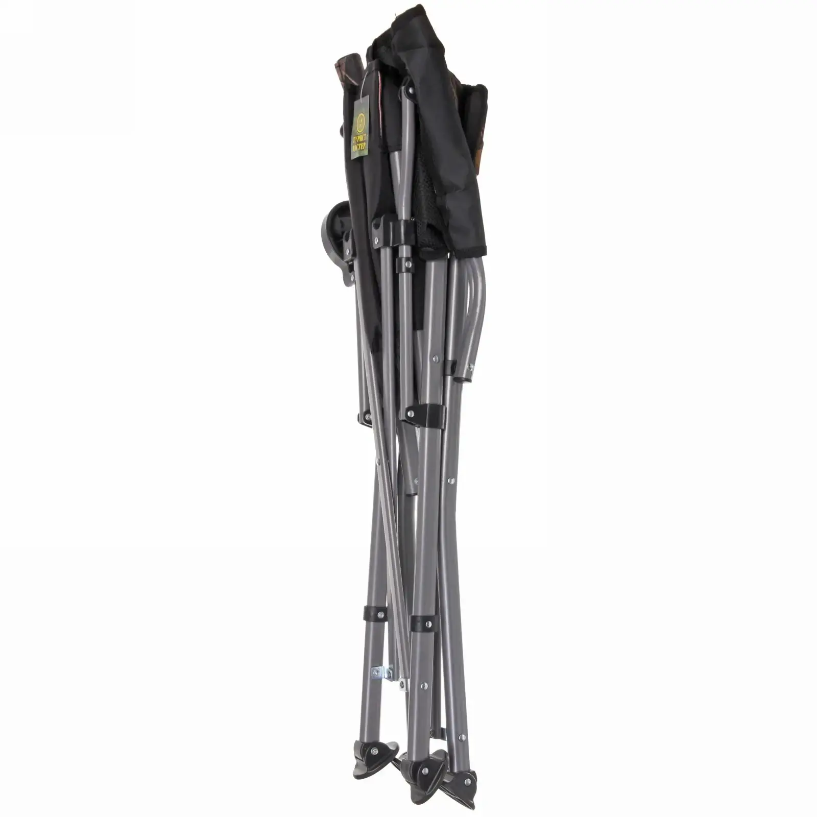 Кресло легко складывается и раскладывается, что позволяет быстро подготовиться к отдыху. Оно подходит для людей с весом до 120 кг, обеспечивая надежную поддержку и комфорт. Высокая спинка и широкое сиденье с мягкими подлокотниками позволяют наслаждаться длительным пребыванием в кресле без дискомфорта.