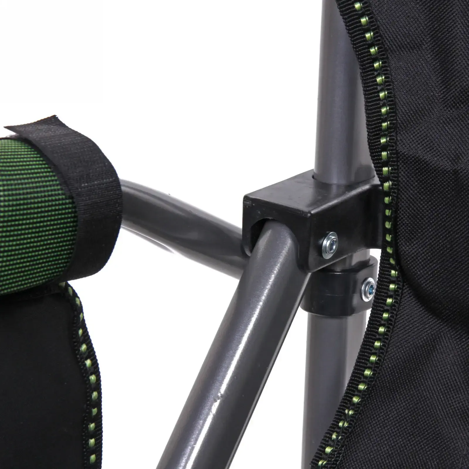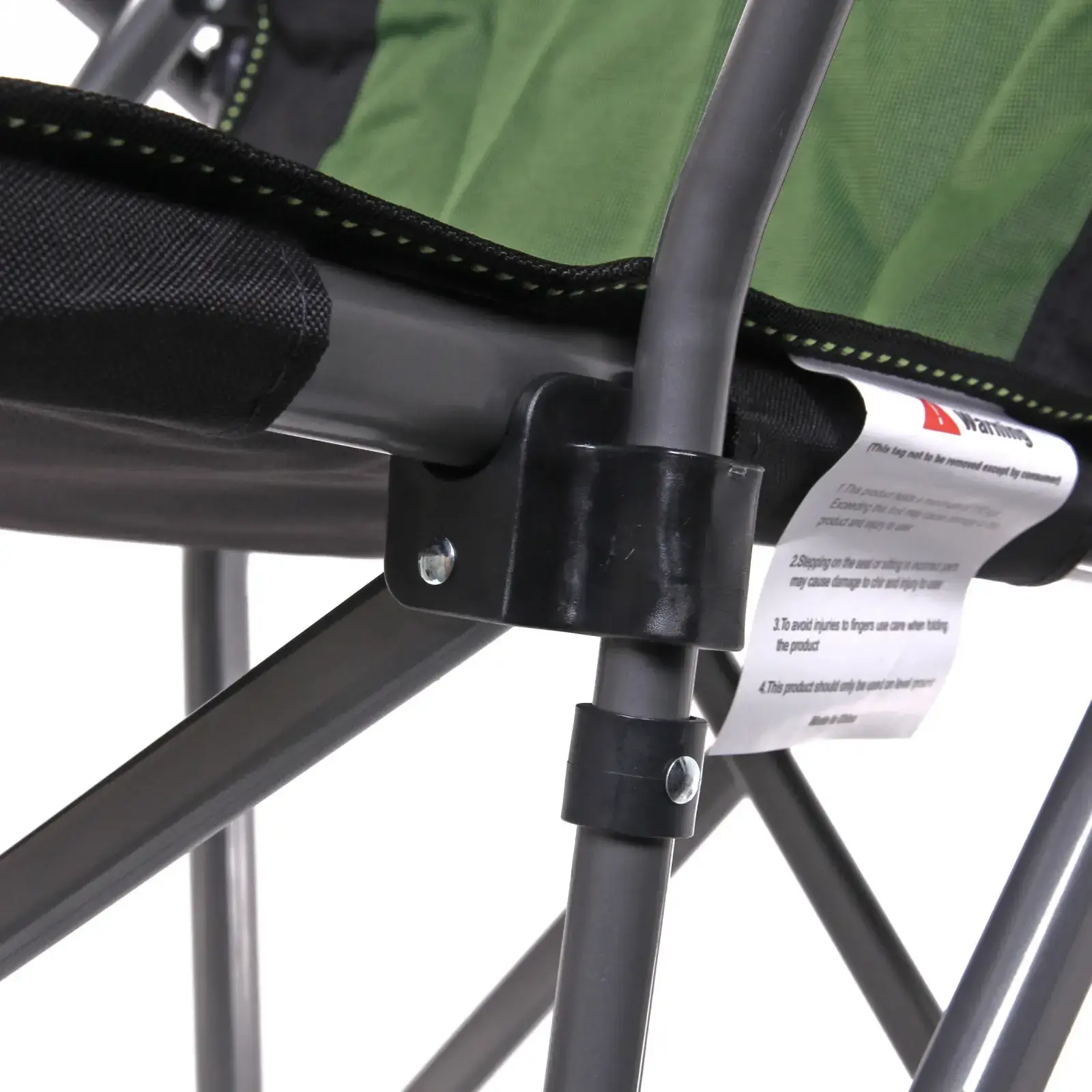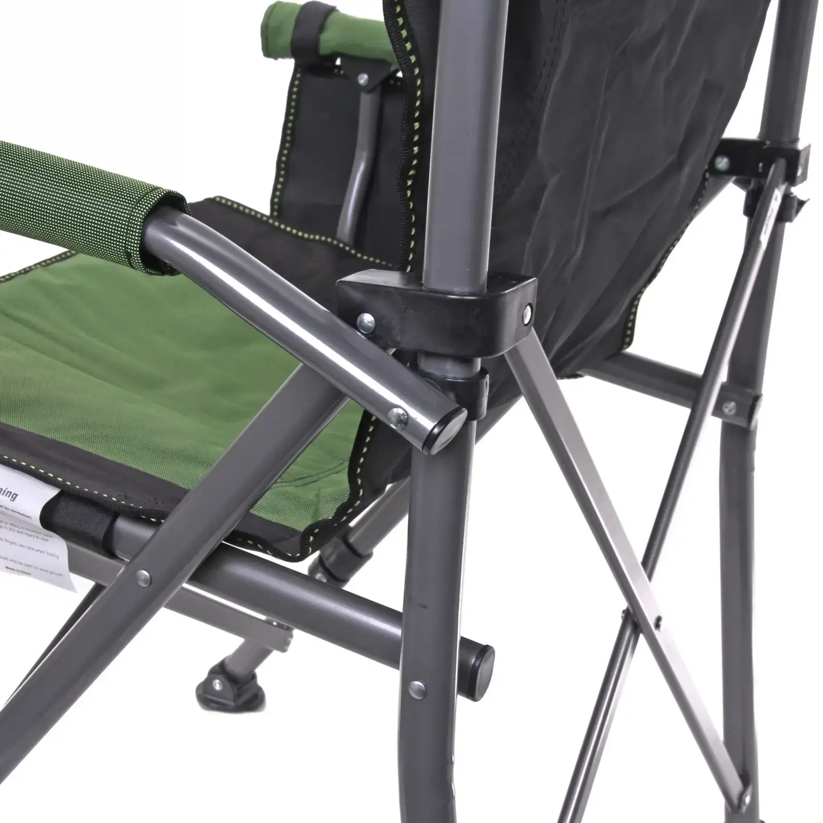 Это кресло легко складывается и раскладывается, что позволяет быстро подготовиться к отдыху. Оно подходит для людей с весом до 120 кг, что делает его универсальным для большинства пользователей. Высокая спинка и широкое сиденье обеспечивают отличную поддержку, а мягкие подлокотники добавляют дополнительный комфорт.