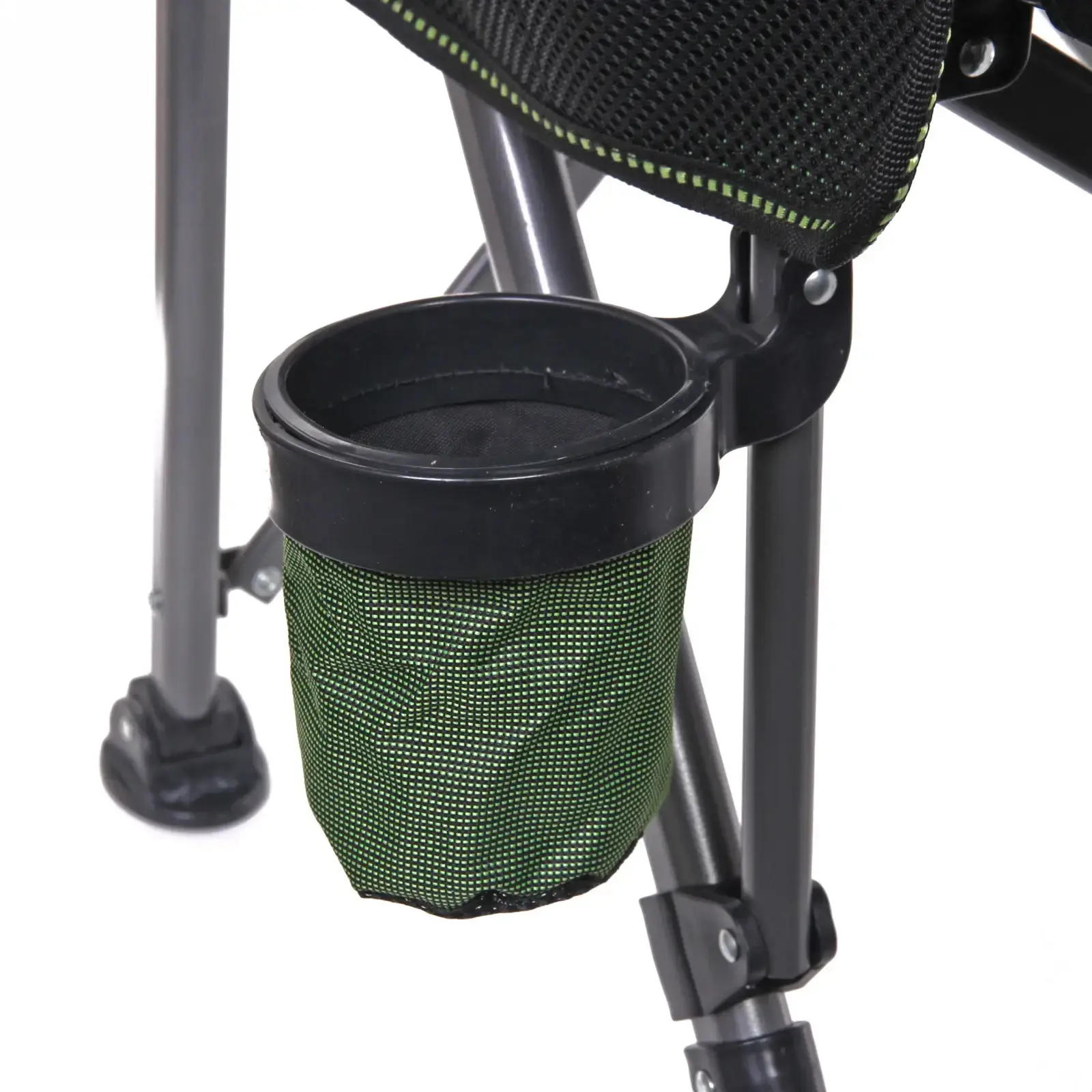 Кресло изготовлено из усиленной стальной рамы и прочной полиэфирной ткани (Оксфорд 600D), что гарантирует долговечность и устойчивость к внешним воздействиям. Водоотталкивающие свойства ткани защищают от влаги и загрязнений, а антикоррозийное покрытие каркаса обеспечивает надежность в любых условиях. Подстаканник и карман для мелочей делают использование кресла еще более удобным.