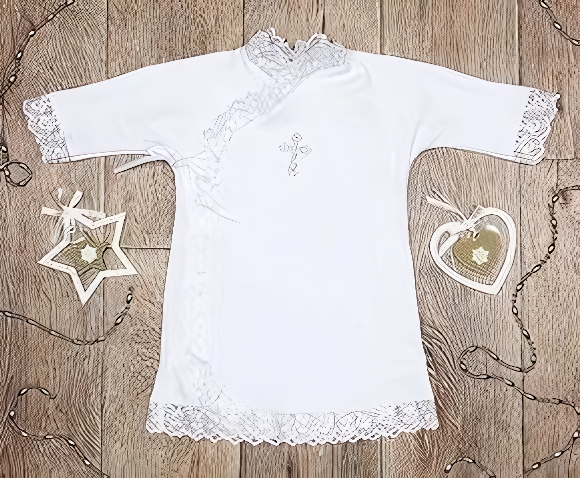 Эта крестильная рубашка станет прекрасным дополнением к таинству крещения, подчеркнет важность момента и создаст незабываемые воспоминания. Позвольте вашему малышу выглядеть очаровательно в этот особенный день.