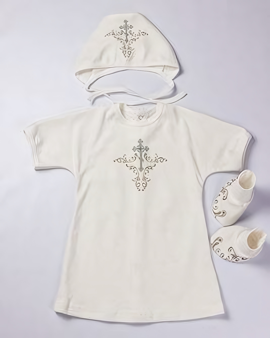 Подарите малышу спокойствие и комфорт с крестильным набором р.68 в молочном цвете — 100% хлопок, безопасная обработка, нежный на ощупь материал.