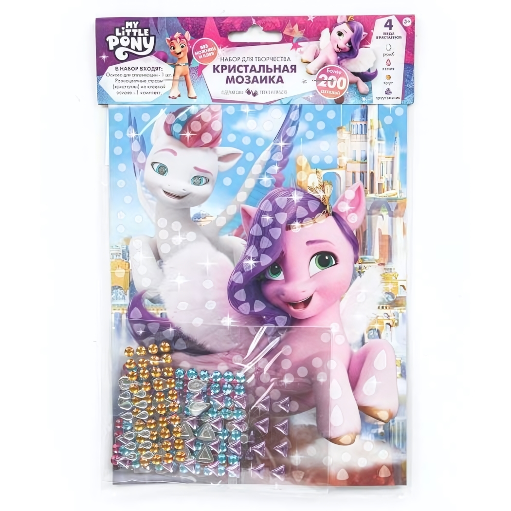 Набор для творчества: кристальная мозаика «Мой маленький пони», 200 стразов, 4 вида, без клея, 17х23 см, от 3 лет