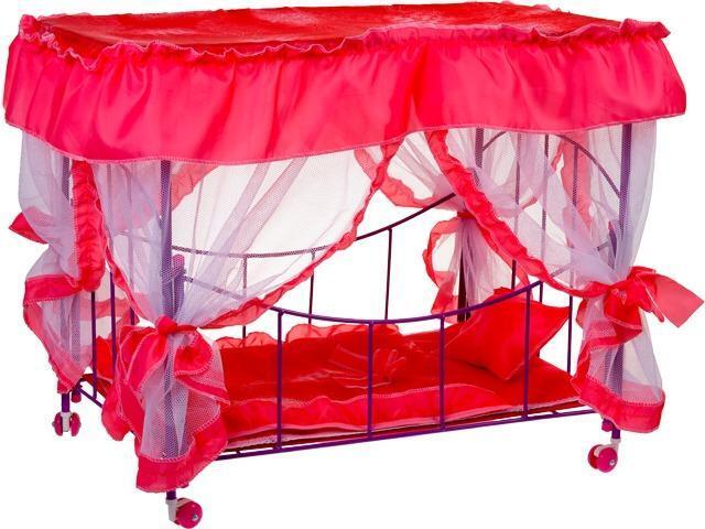 Преимущества этой модели включают прочность, долговечность и современный дизайн: яркий розовый цвет, украшенный тканевыми бантиками и оборками. В комплект входит набор постельных принадлежностей для максимального комфорта куклы и ребенка.