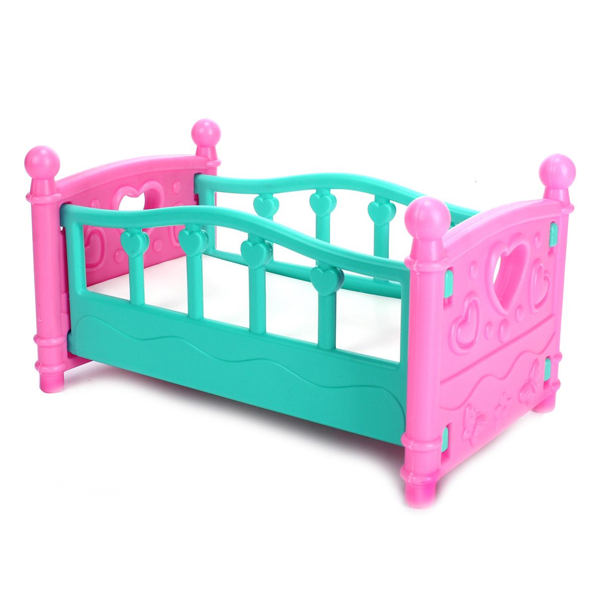 Кроватка для кукол с декором "Сердечки", пластик, розовый/бирюзовый, 28х16х15,5см — безопасная игрушка для развития