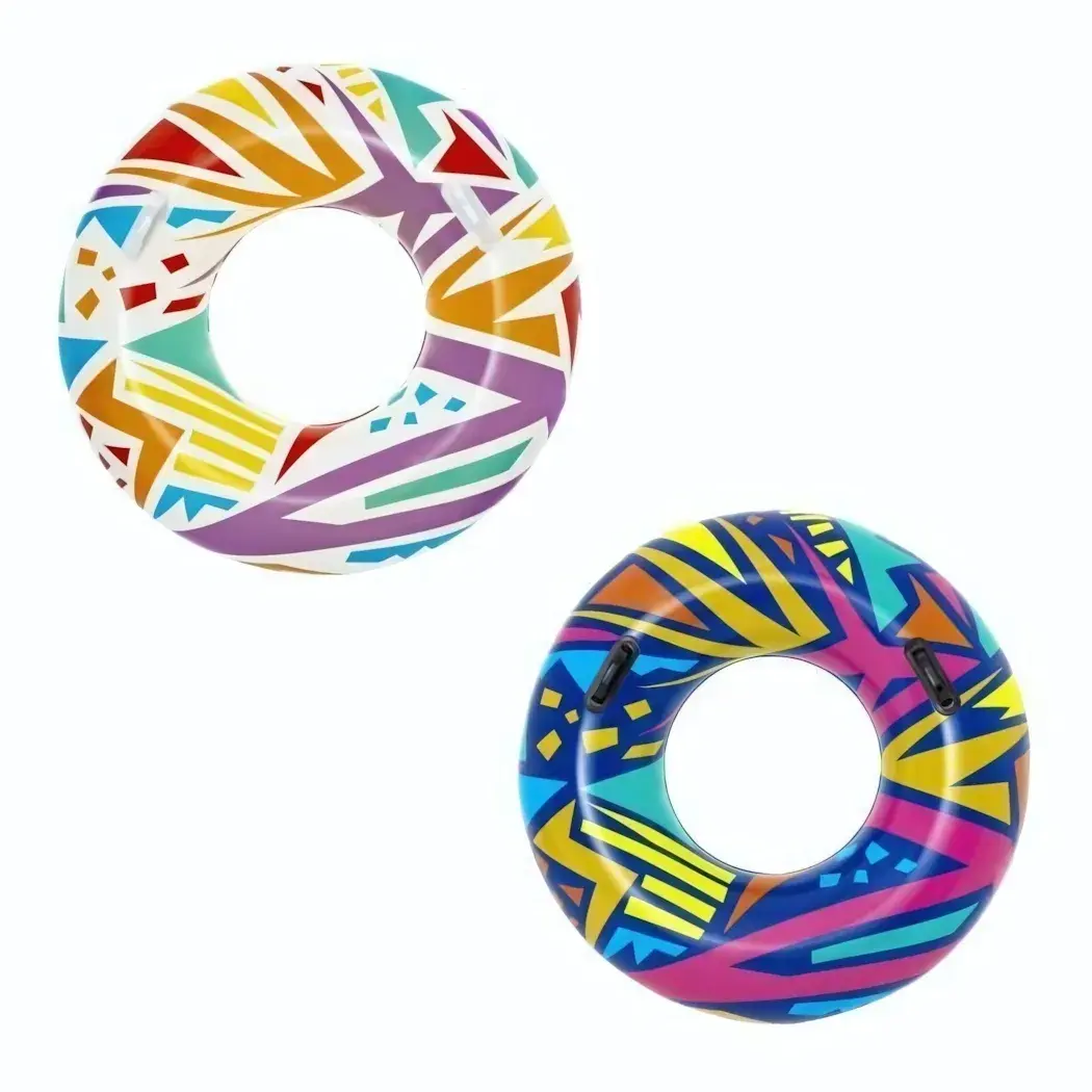 Надувной круг для плавания Bestway, диаметр 107 см, геометрический принт, ПВХ, ручки, ремкомплект