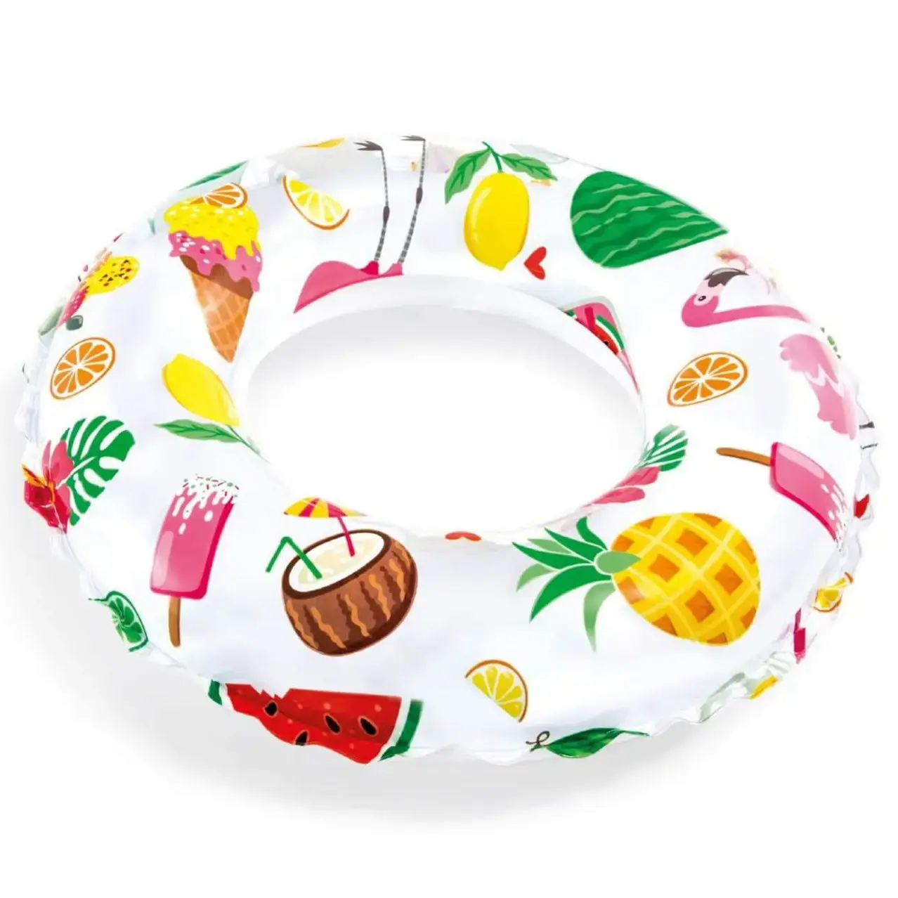 Этот надувной круг представлен в нескольких вариантах ярких дизайнов: фруктовые, морские и летние иллюстрации привлекают детей с первого взгляда. Круг легко моется и быстро сохнет, его можно брать с собой практически куда угодно. Насос для надувания приобретается отдельно. Создайте для ребенка лучшие воспоминания о лете с помощью безопасного и стильного аксессуара для водных развлечений!