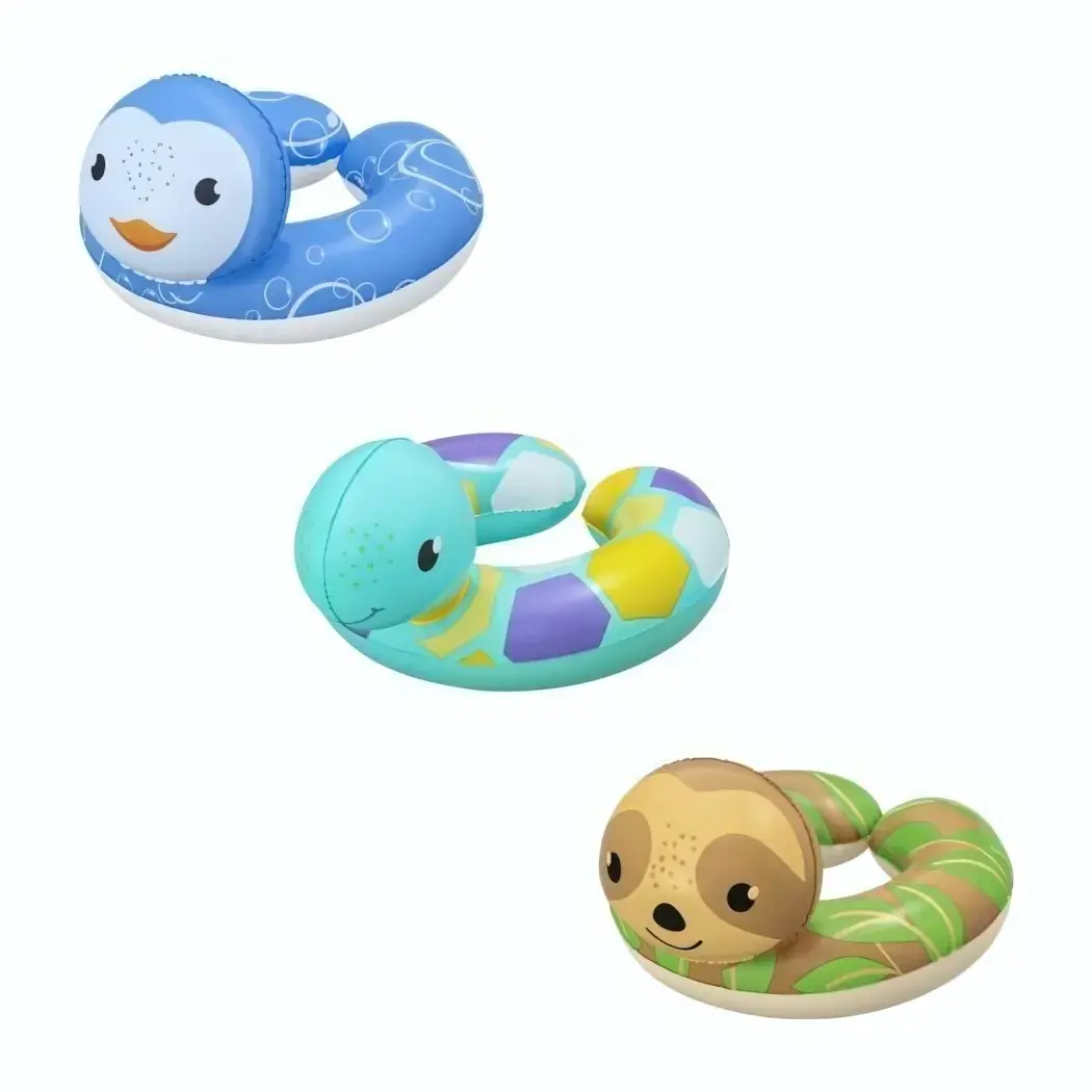 Круг представлен в трех ярких вариантах: с изображением пингвина, морской черепахи и ленивца. Каждый из них выполнен в дружелюбных цветах, что делает их привлекательными для детей. Размеры круга оптимальны для комфортного плавания и игры в воде.