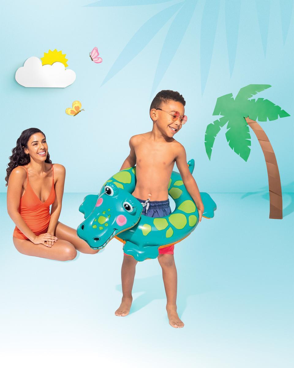 Круг предназначен для использования в бассейне или на пляже. Его яркие цвета и забавные формы животных, такие как лама, единорог и крокодил, привлекут внимание и создадут радостную атмосферу. Благодаря своим размерам 86 см на 58 см, он идеально подходит для маленьких детей, обеспечивая им поддержку и уверенность на воде.