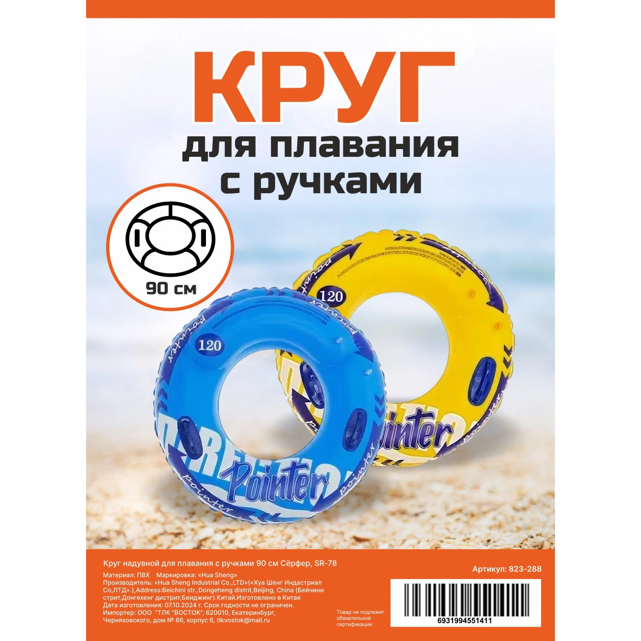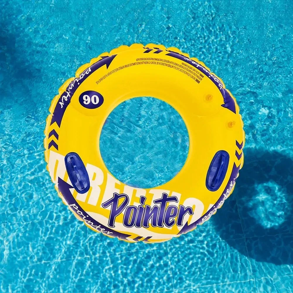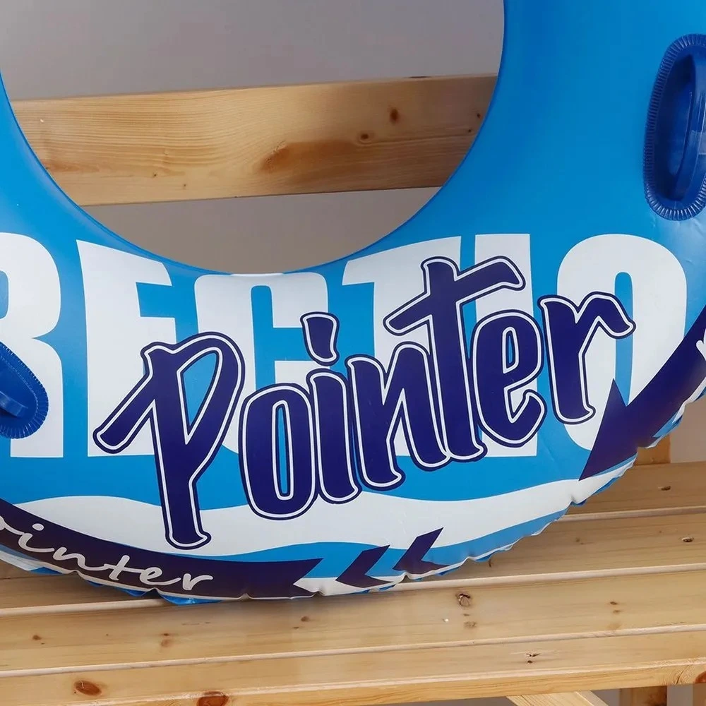 - Яркий дизайн в ассортименте цветов: Круг отгружается в одном из ярких цветов — солнечном желтом или насыщенном синем. Стильная графика с надписью "Pointer" и динамичными стрелками привлекает внимание.