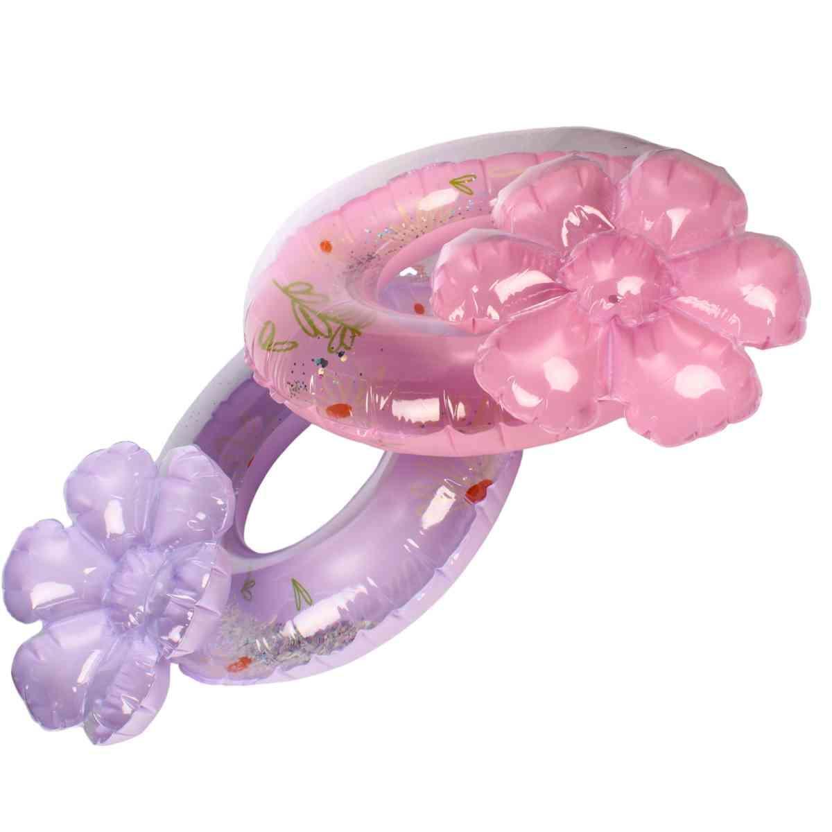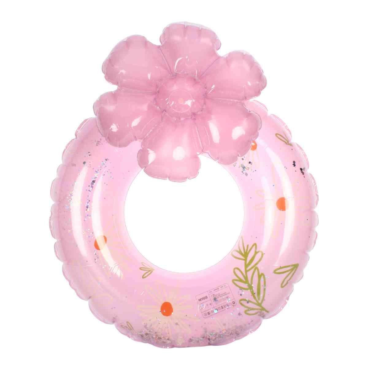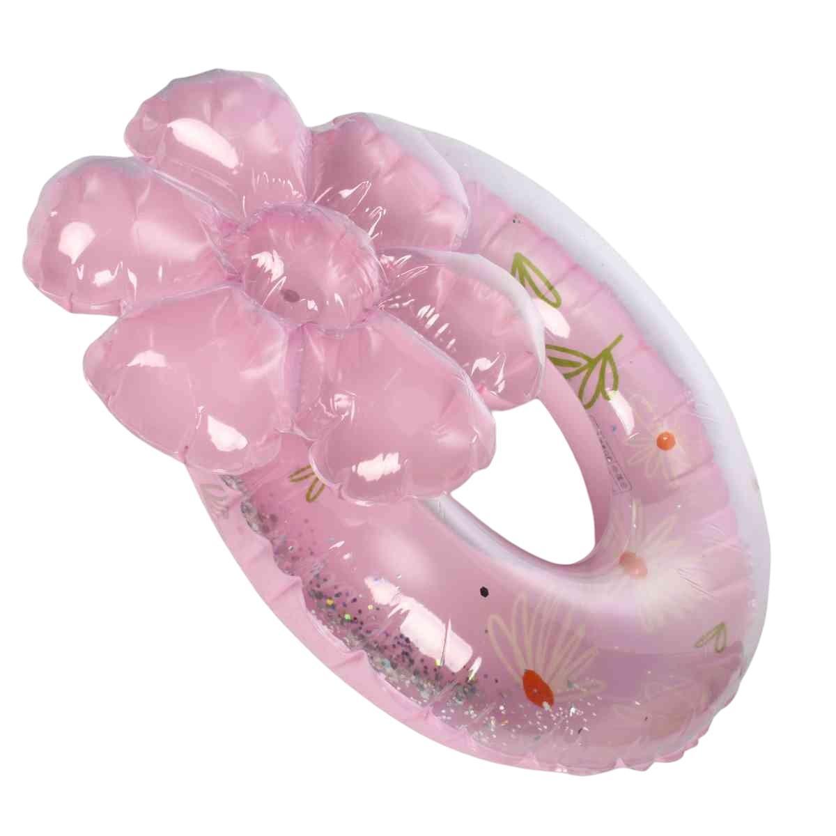 Этот красочный надувной круг диаметром 70 см с изображениями цветов и блестками подарит вашему ребенку комфорт и безопасность на воде.