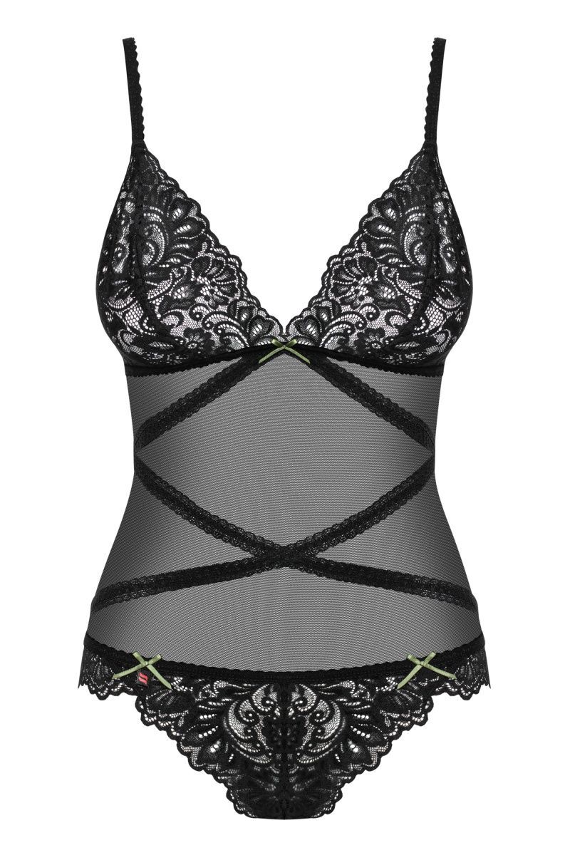 Боди кружевное 'Bondea', черное, размер S-M, с регулируемыми бретелями
