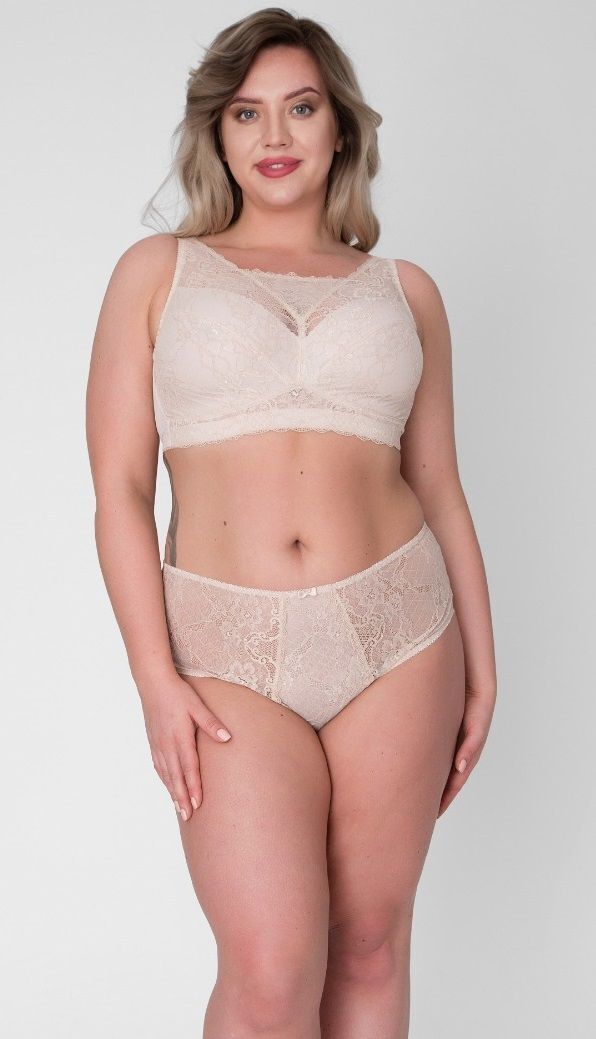 Бюстгальтер-топ кружевной с мягкими чашками без косточек, размер 70K, телесный, 85% полиамид/15% эластан