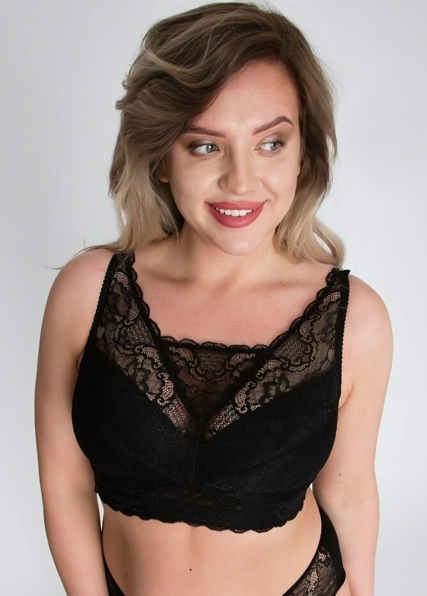 Кружевной бюстгальтер-топ создан для тех, кто ценит естественную красоту и удобство в каждой детали. Мягкие чашки без жёстких косточек обеспечивают комфортную поддержку, сохраняя природную форму груди.