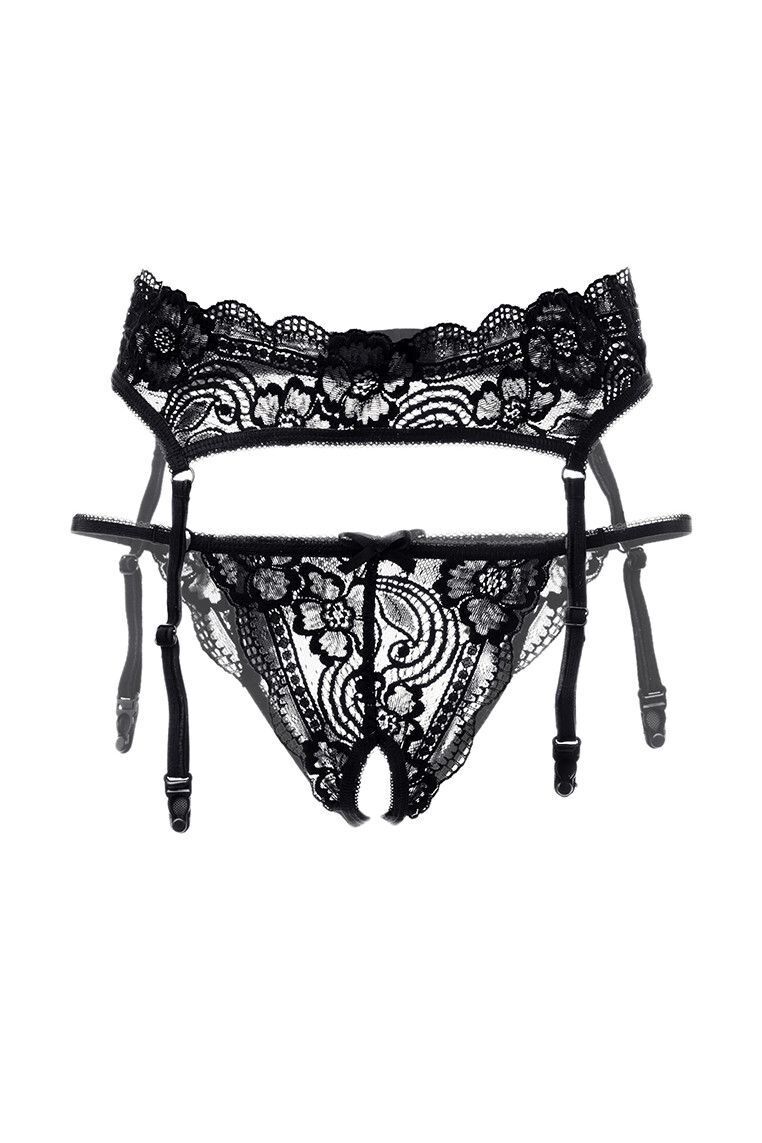 Кружевной пояс оснащен регулируемой застежкой, что позволяет легко подгонять его под вашу фигуру. Трусики с открытой попкой и атласными бантиками добавляют игривости и сексуальности. Этот комплект идеально подходит для особых случаев или для того, чтобы добавить немного остроты в повседневную жизнь.