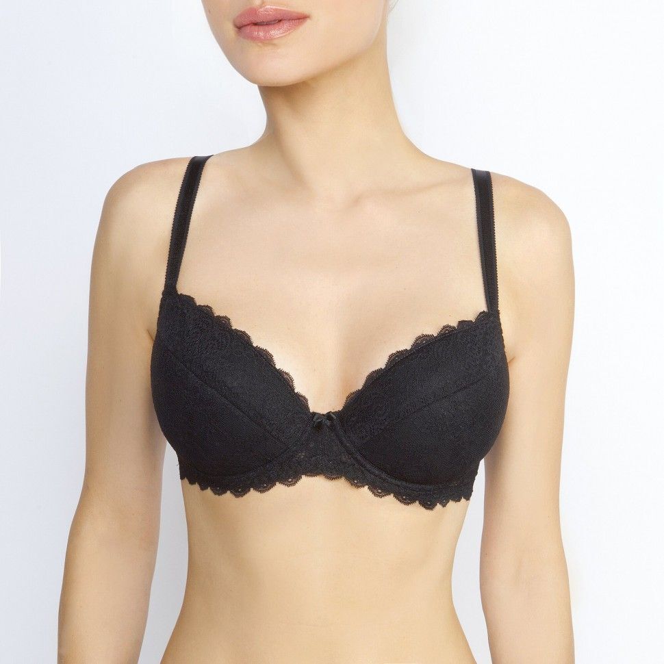 Бюстгальтер пуш-ап черный, размер 80C, кружевной, на каркасах