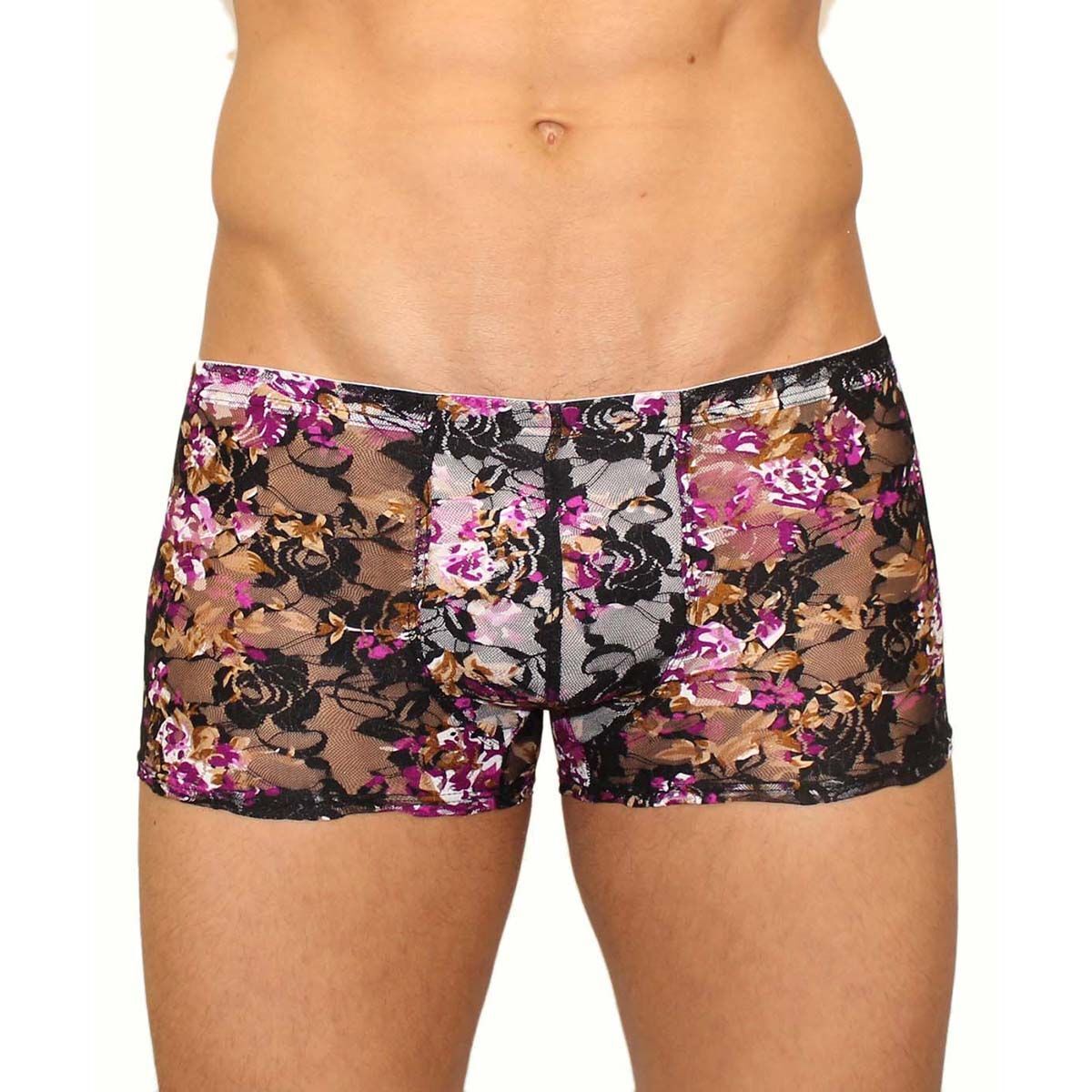 Кружевные трусы-хипсы Romeo Rossi сочетают дерзкий дизайн с максимальным комфортом. Черный цвет с фиолетово-розовым цветочным узором создаёт соблазнительный контраст, подчёркивающий индивидуальность.