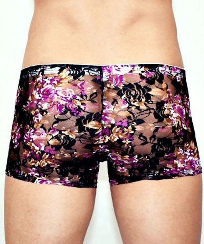 Мужские кружевные трусы-хипсы Romeo Rossi, цветочный узор, черный, размер S, 90% полиэстер/10% эластан