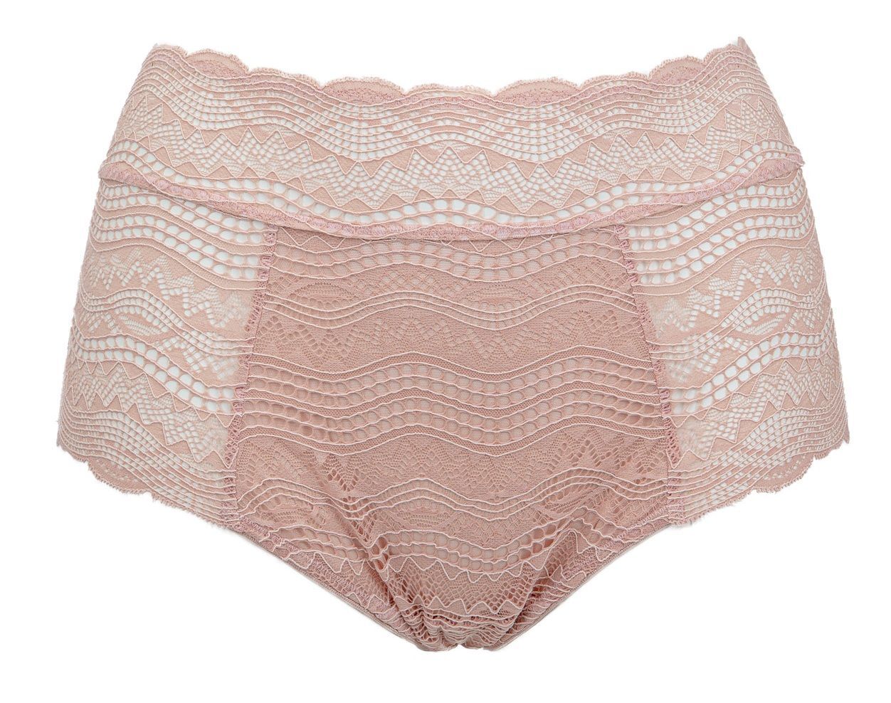 Трусики-слип кружевные Luna с завышенной посадкой для комфорта, хлопковая ластовица, размер 42 (рос.48), цвет пудровый