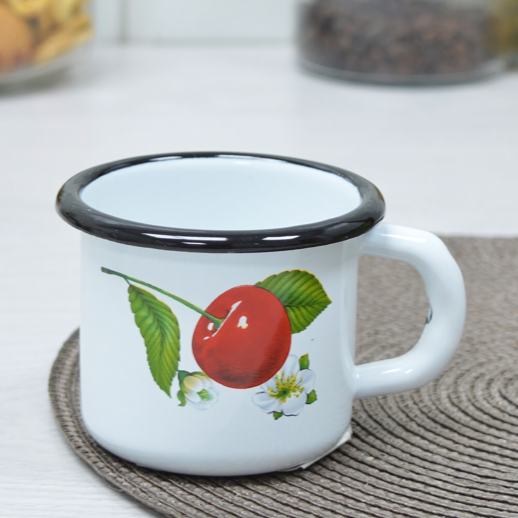 Кружка эмалированная 0,25л с рисунком вишни, сталь, цвет в ассортименте