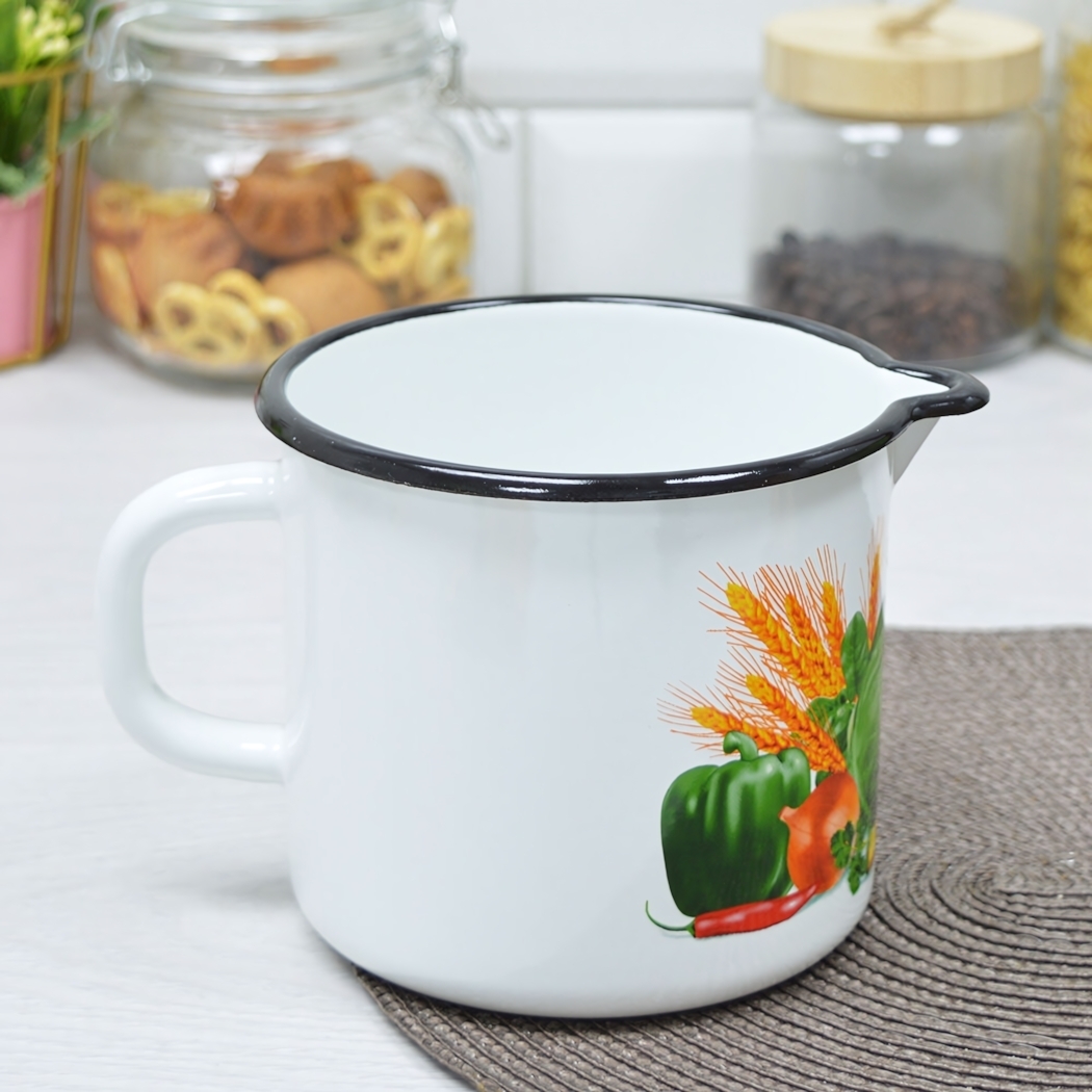 Эта кружка с носиком станет незаменимым помощником в вашем доме. Благодаря своему объему в 1 литр, она идеально подходит для подачи чая, кофе или других напитков. Эмалированная поверхность не только придает кружке стильный вид, но и обеспечивает долговечность и легкость в уходе. Вы сможете наслаждаться любимыми напитками, не беспокоясь о том, что кружка потеряет свой первоначальный вид.