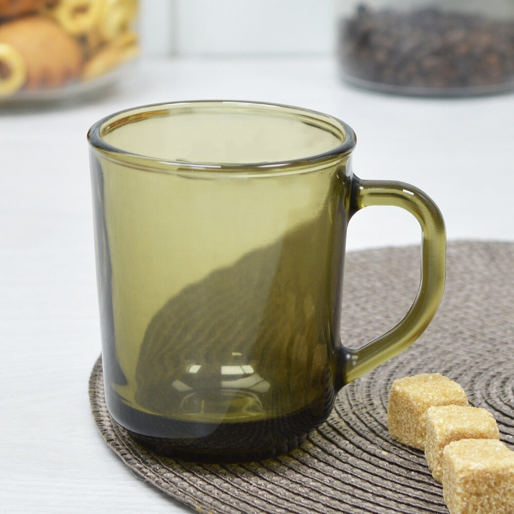 Стеклянная кружка "Ogni Giorno" создана для тех, кто ценит эстетику и качество в повседневной жизни. Её полупрозрачный оливковый оттенок и элегантный дизайн станут изысканным дополнением вашего утреннего ритуала.