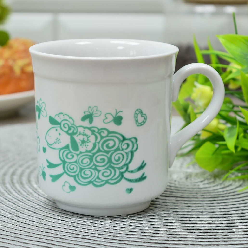 Кружка имеет стандартный объем 250мл, что идеально подходит для детских порций. Ее цилиндрическая форма и удобная ручка обеспечивают комфортное использование. Яркий рисунок с овечкой и сердечками не только радует глаз, но и создает уютную атмосферу во время чаепития.