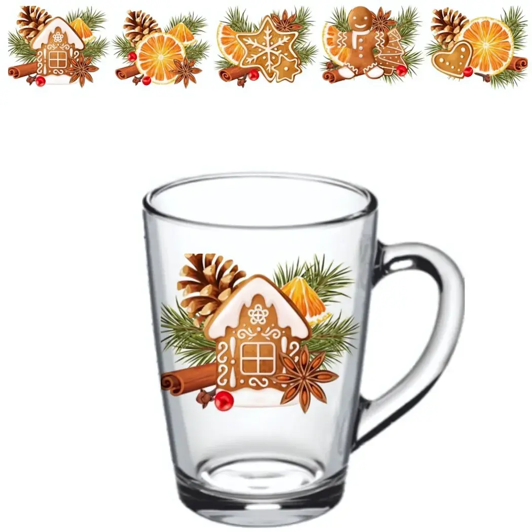 Эта кружка — идеальный выбор для создания праздничной атмосферы в вашем доме или офисе. С объемом 300 мл и современным дизайном, она станет не только функциональным, но и стильным аксессуаром для ваших напитков. Прозрачное стекло позволяет наслаждаться красотой содержимого, а уникальный рисунок с изображением домика из пряника, пряных палочек и еловых веток добавляет особый шарм.