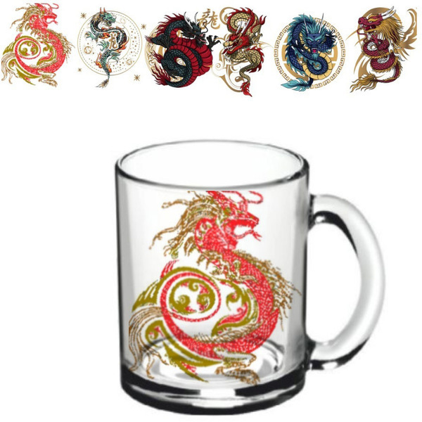 Кружка имеет объем 320 мл и выполнена из прочного стекла, что делает ее надежной в использовании. Дизайн с изображением дракона включает в себя элементы спирали и волнистые линии, что придает ей особую выразительность. Каждая кружка представлена в 6 различных вариантах, что позволяет выбрать именно ту, которая вам по душе.