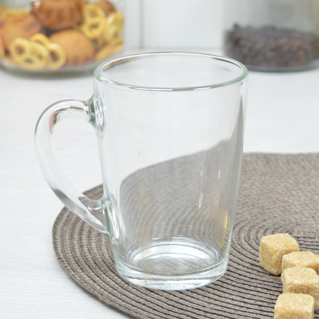 Кружка выполнена из прочного стекла, устойчивого к повседневному использованию. Легко моется вручную или в посудомоечной машине, что экономит время и силы. Подходит для холодных и горячих напитков. Классический дизайн без лишних украшений гармонично впишется в современный интерьер кухни или офиса.