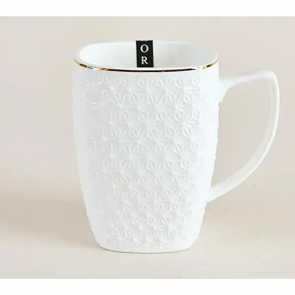 Керамическая кружка 340 мл квадратная, серия «Снежная королева», белая с золотой окантовкой